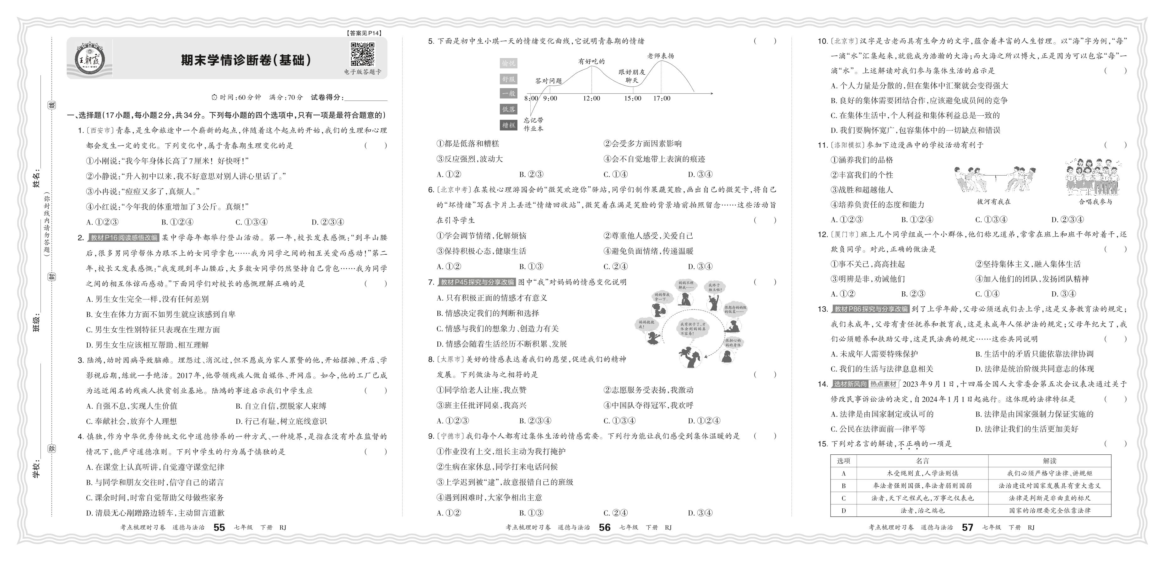 2024春下册七年级道德与法治人教版 期末学期诊断卷(基础)