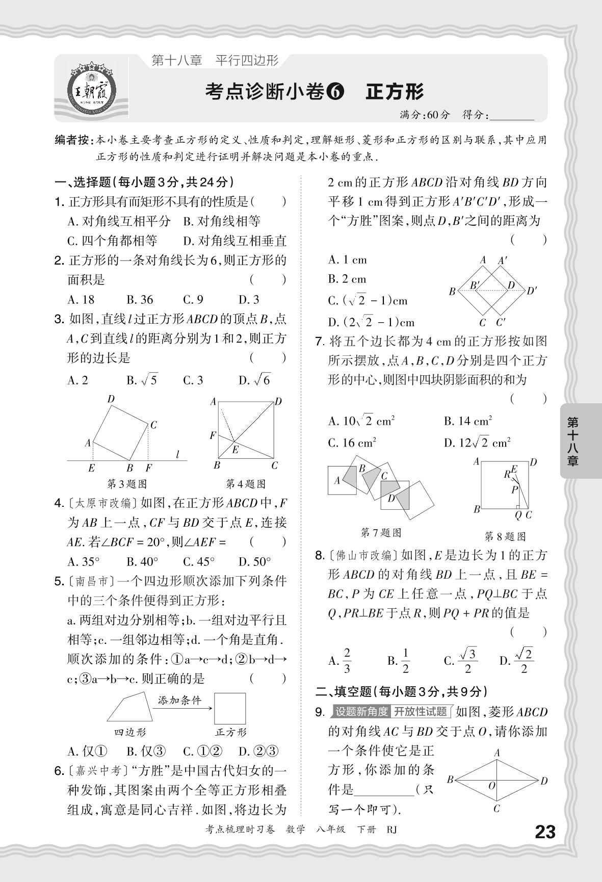 2024春下册八年级数学人教版 第十八章 考点诊断小卷 正方形【6】