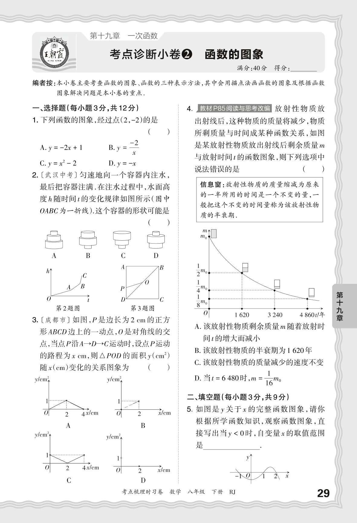 2024春下册八年级数学人教版 第十九章 考点诊断小卷 函数的图象【2】