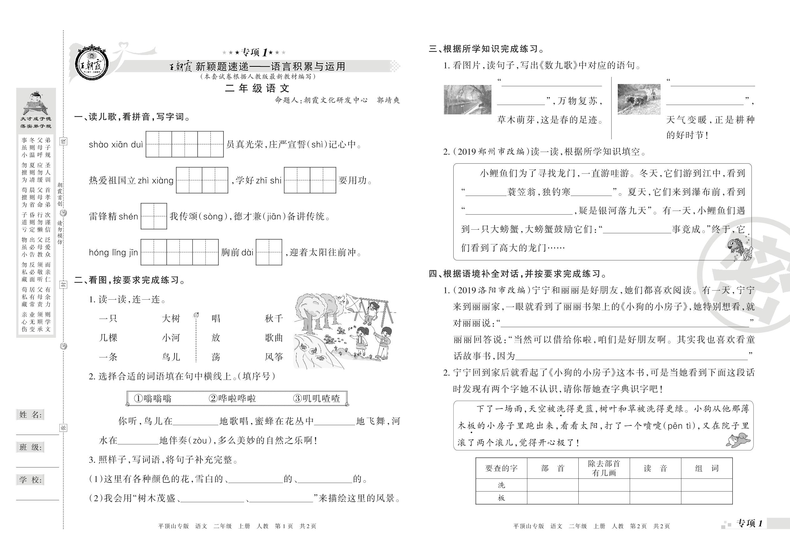 王朝霞期末专项卷——语言积累与运用、非连续性文本阅读二年级上册语文(人教版)_R21080164222【0】