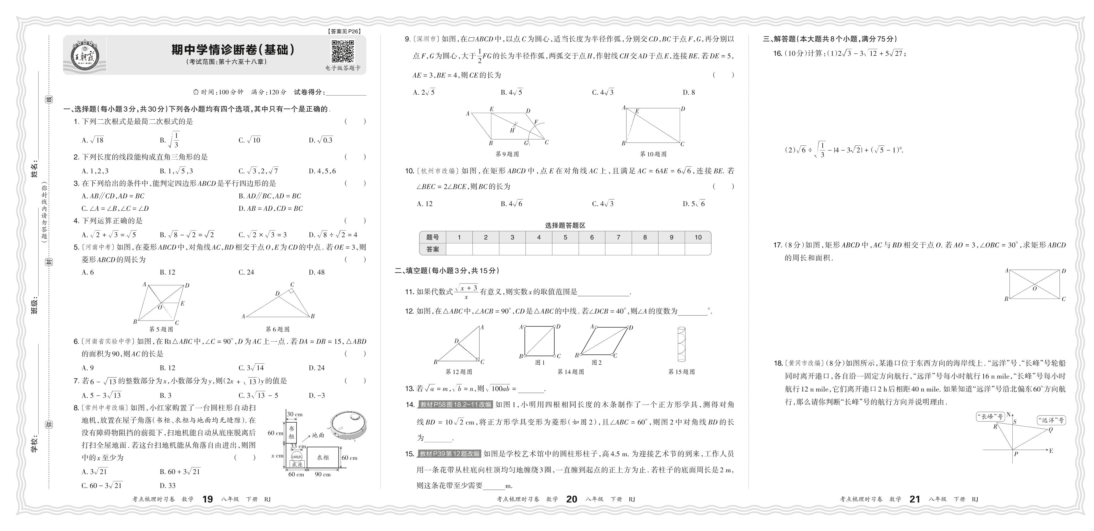 八年级数学人教版下册期中卷
