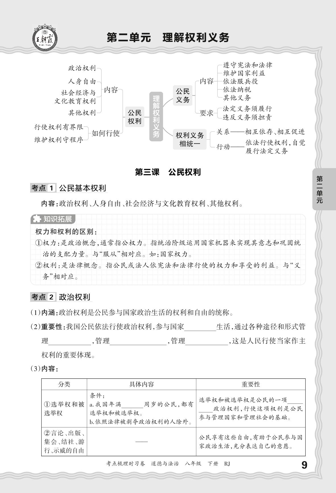 2024春下册八年级道德与法治人教版 考点梳理手册——第二单元 理解权利义务