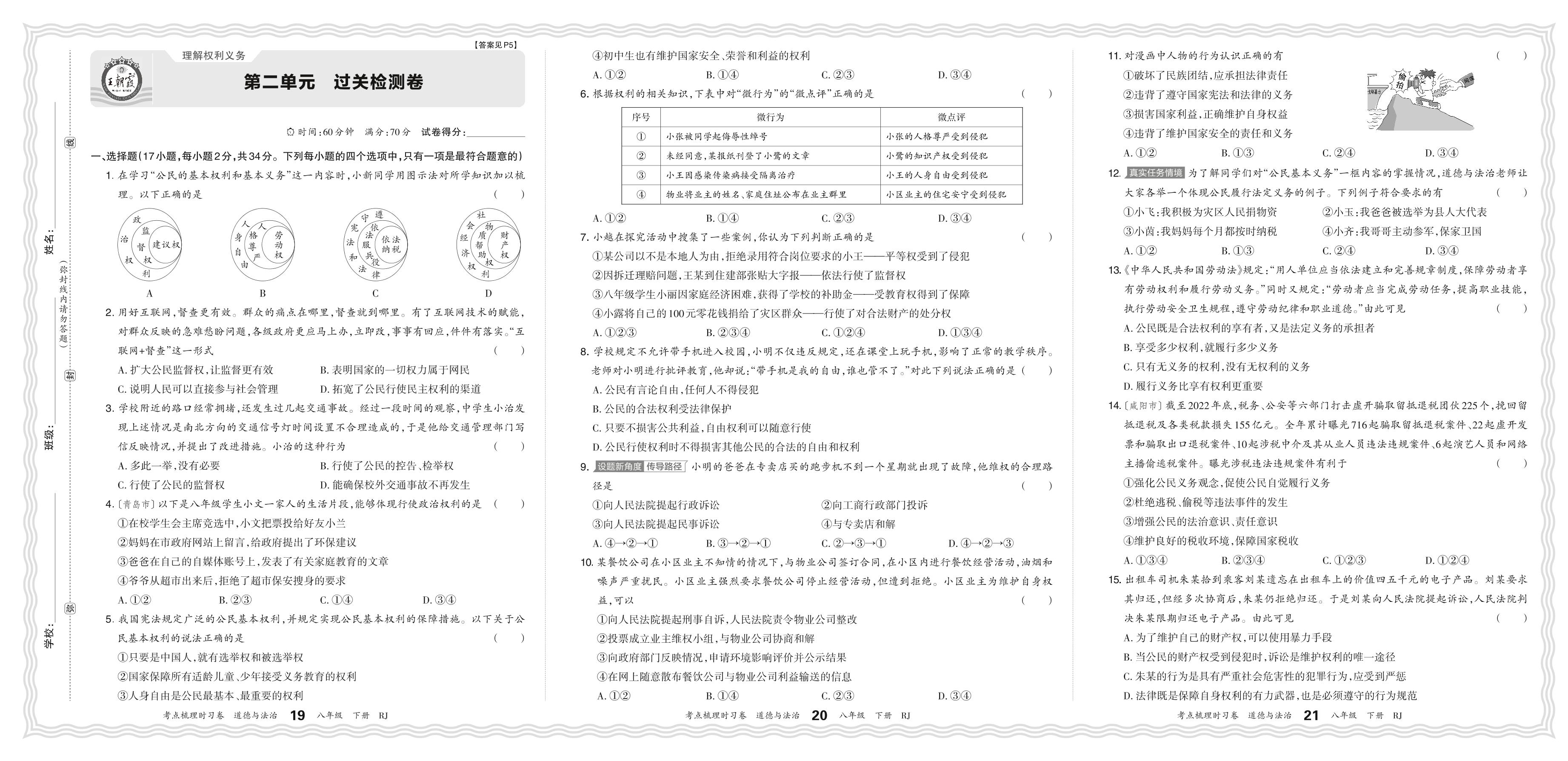 2024春下册八年级道德与法治人教版 第二单元 过关检测卷