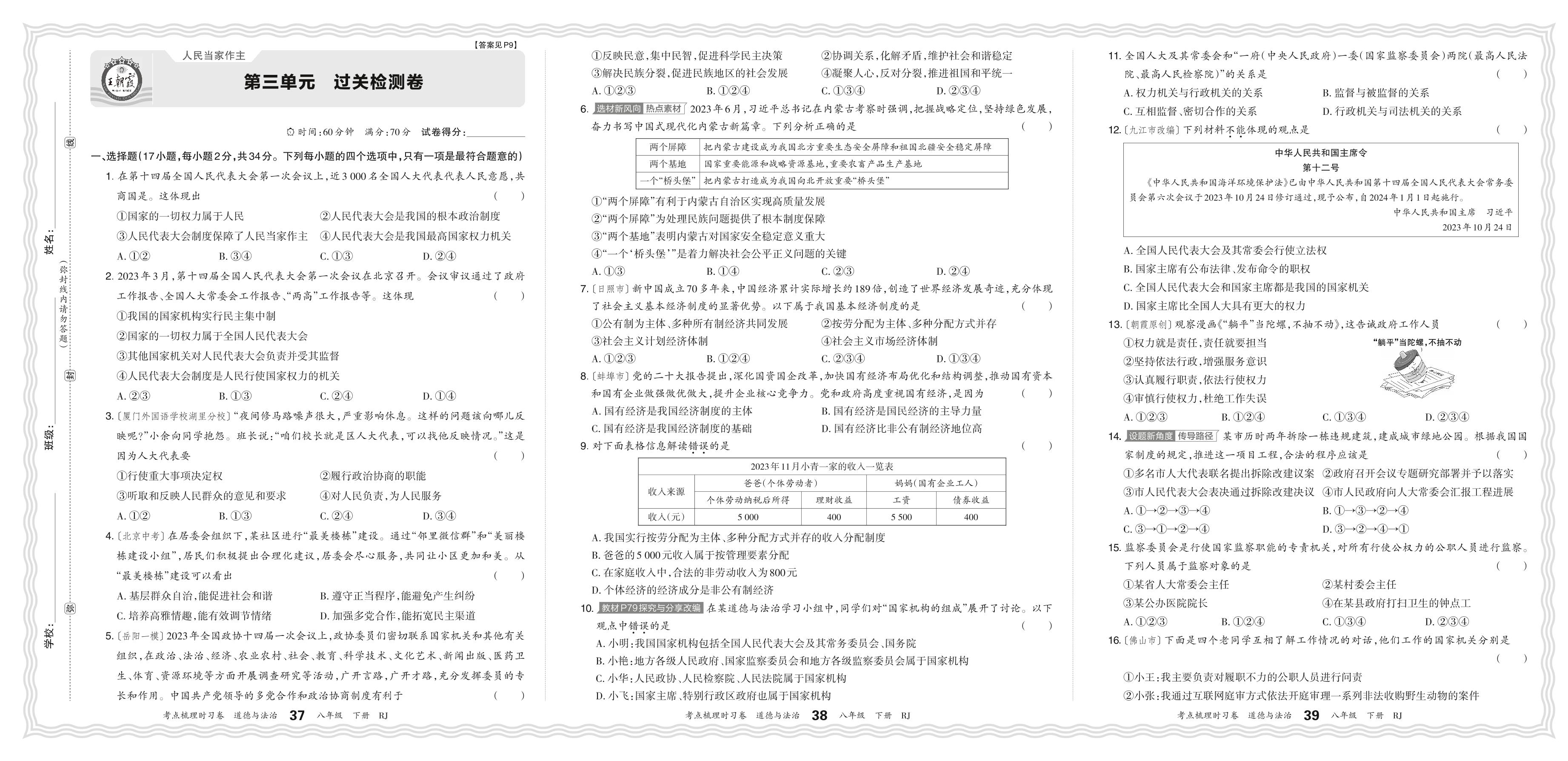 八年级道德与法治人教版下册单元卷