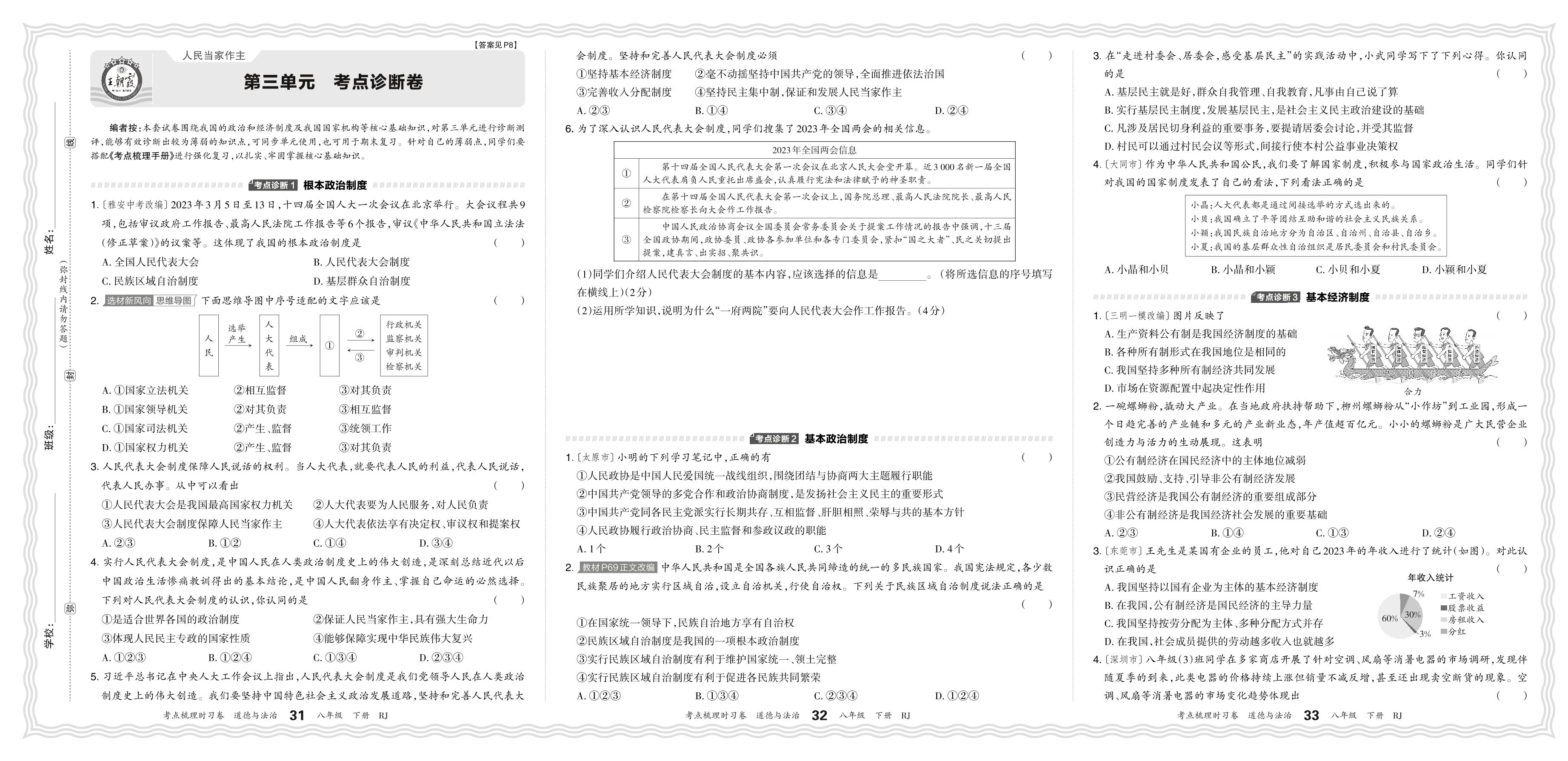 2024春下册八年级道德与法治人教版 第三单元 考点诊断卷