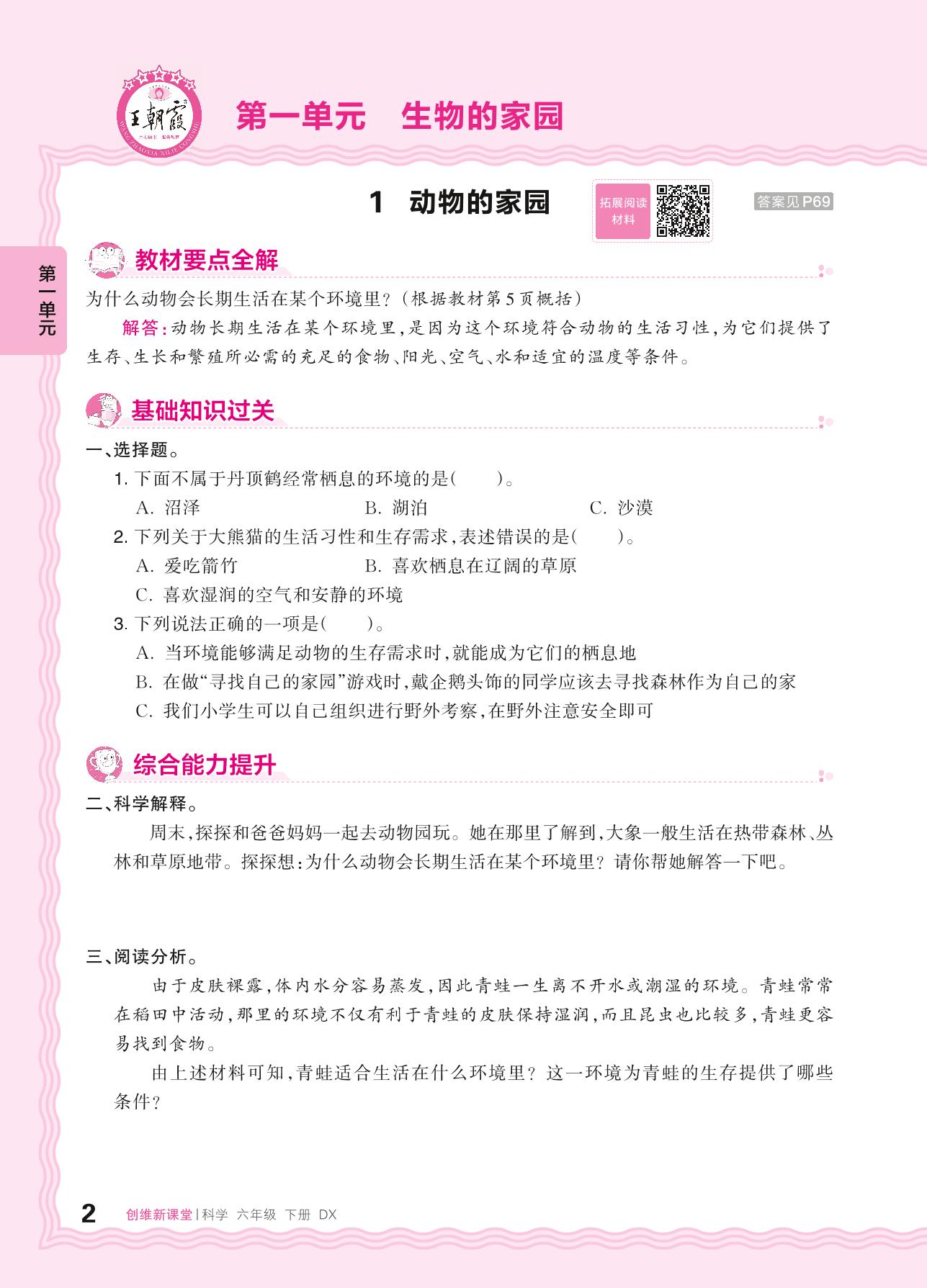 2024春下册六年级科学大象版 第一单元 生物的家园——1. 动物的家园