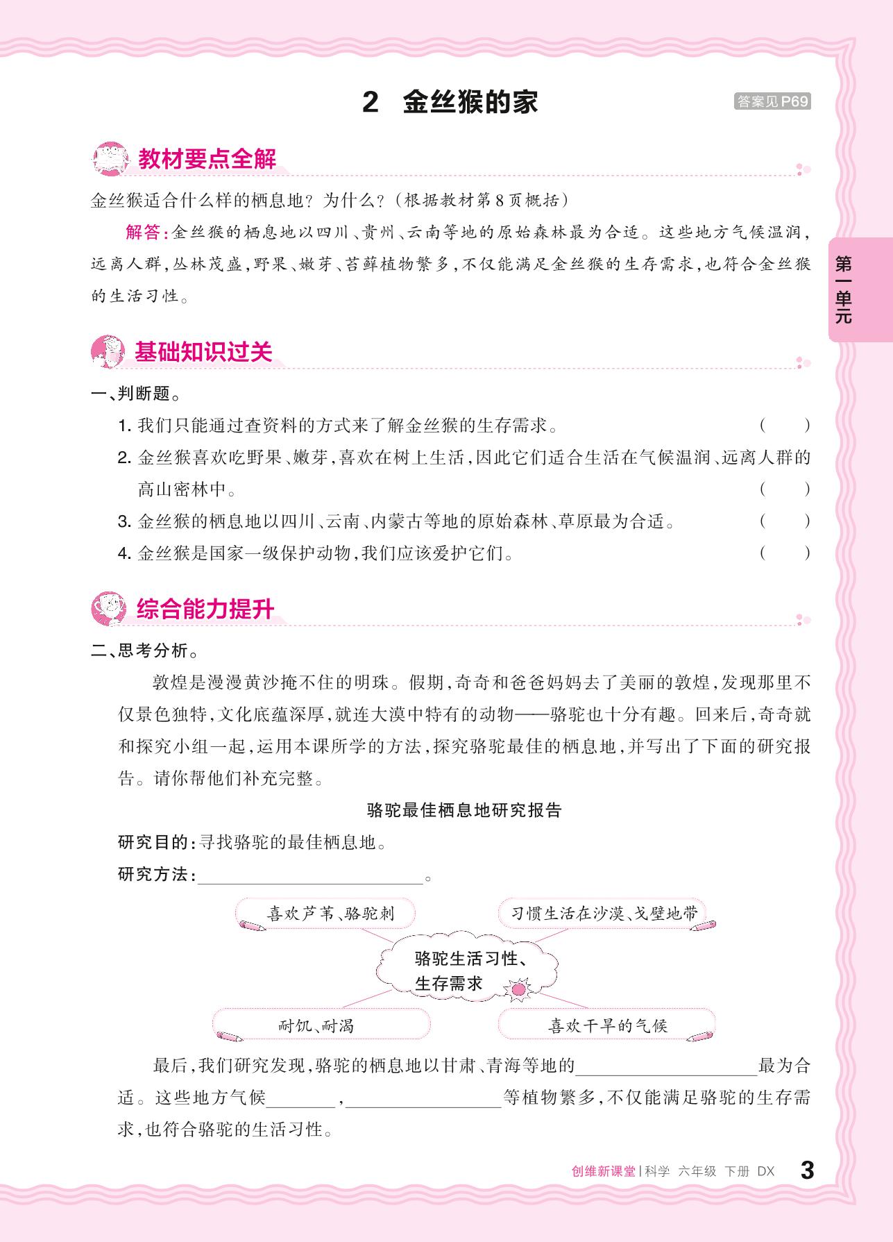 2024春下册六年级科学大象版 第一单元 生物的家园——2. 金丝猴的家