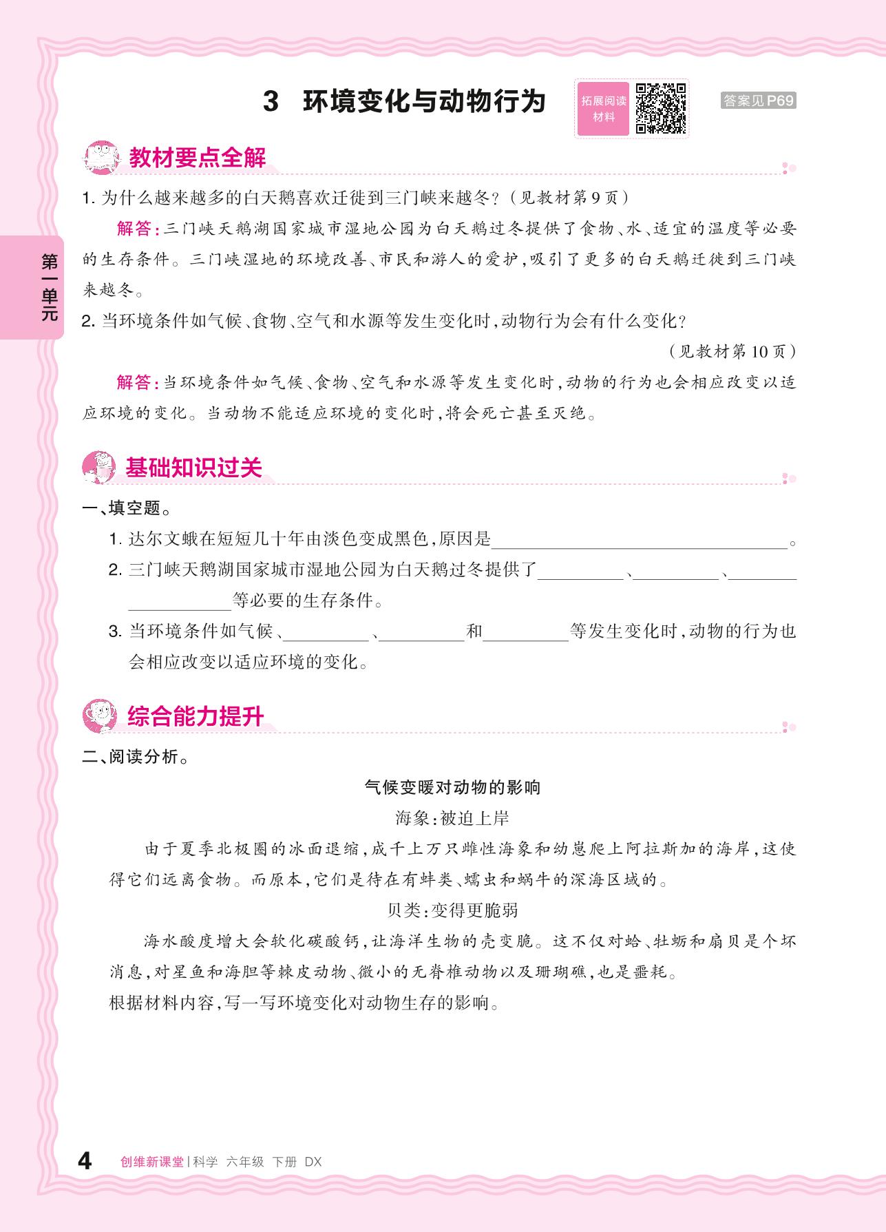 2024春下册六年级科学大象版 第一单元 生物的家园——3. 环境变化与动物行为