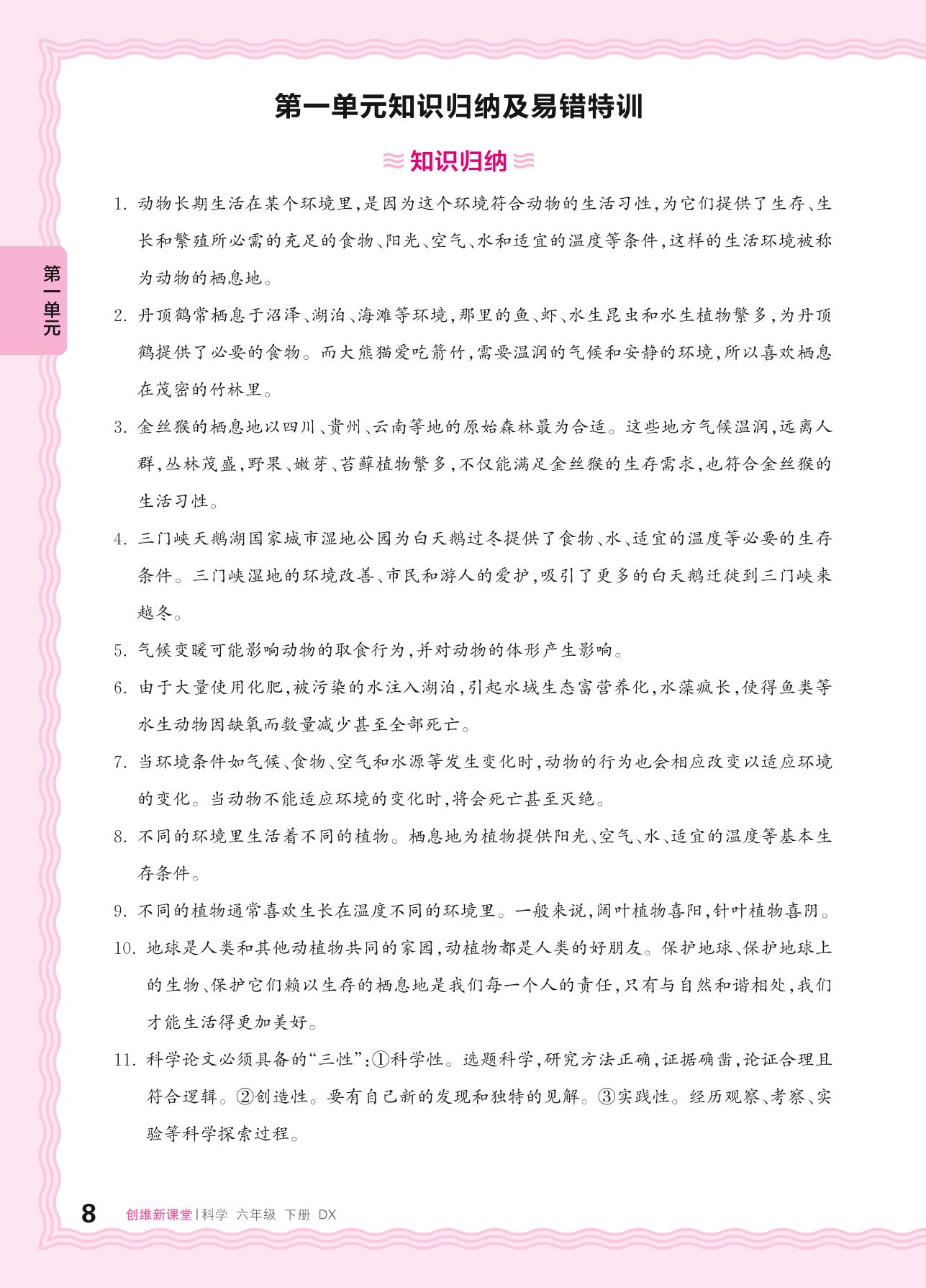 2024春下册六年级科学大象版 第一单元知识归纳及易错特训