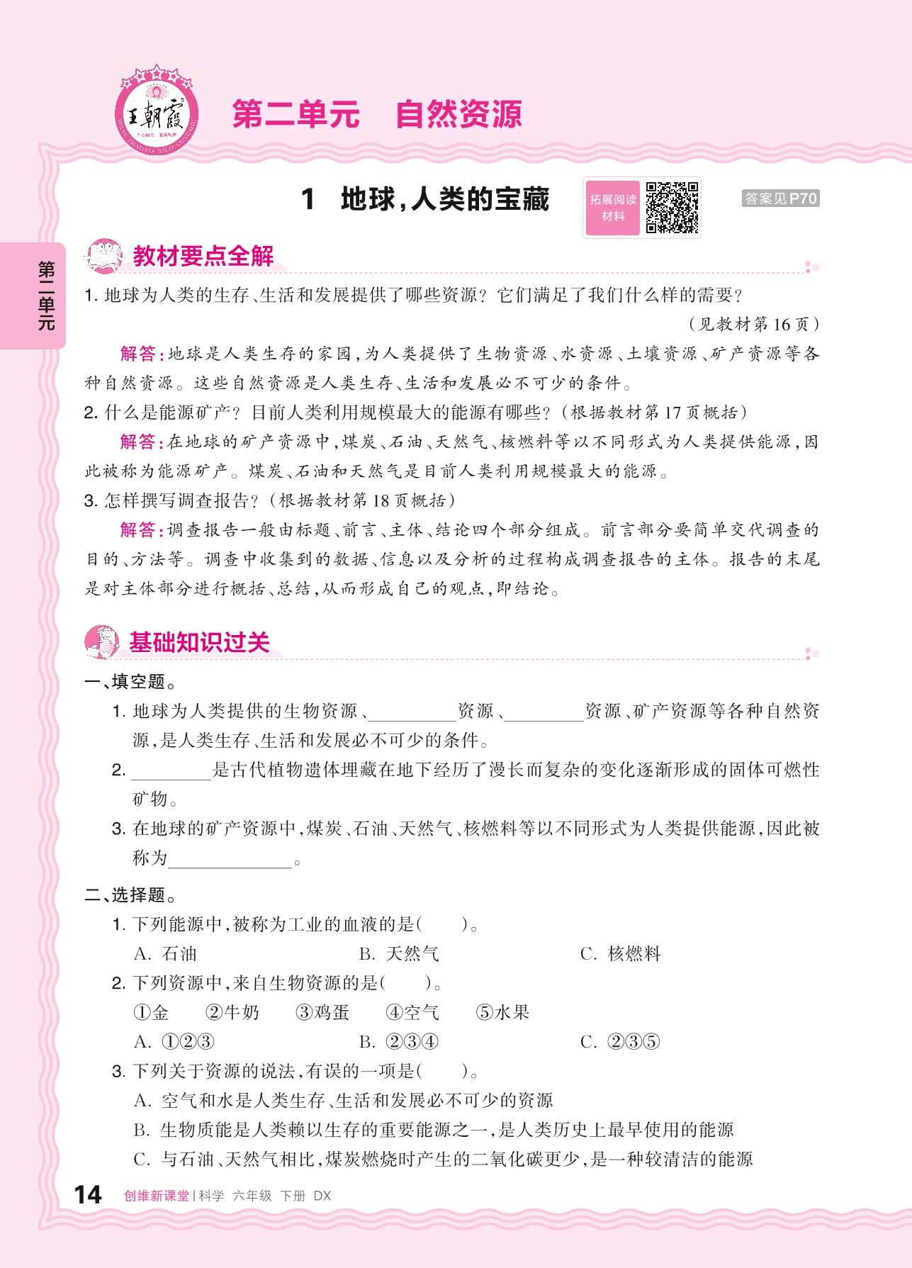 2024春下册六年级科学大象版 第二单元 自然资源——1. 地球,人类的宝藏