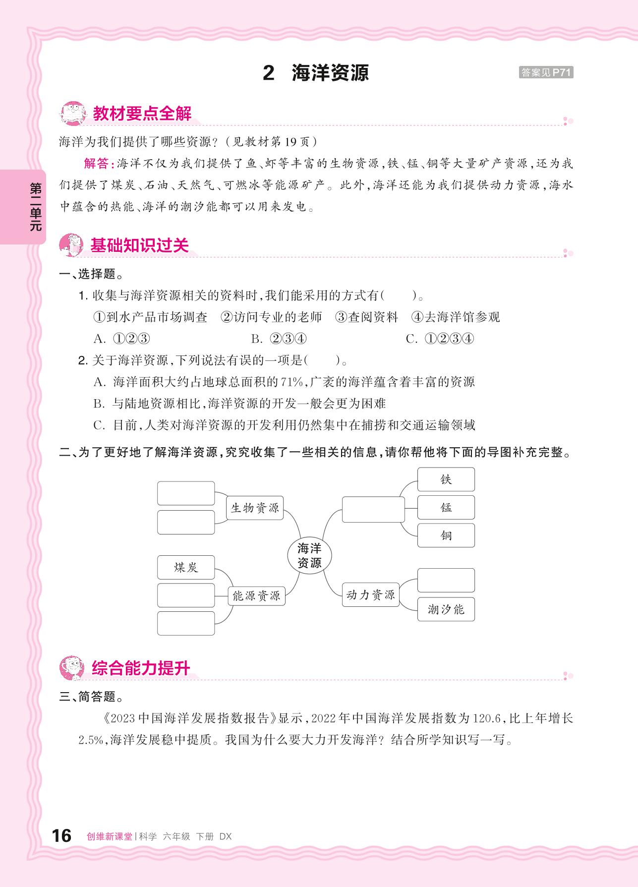 2024春下册六年级科学大象版 第二单元 自然资源——2. 海洋资源