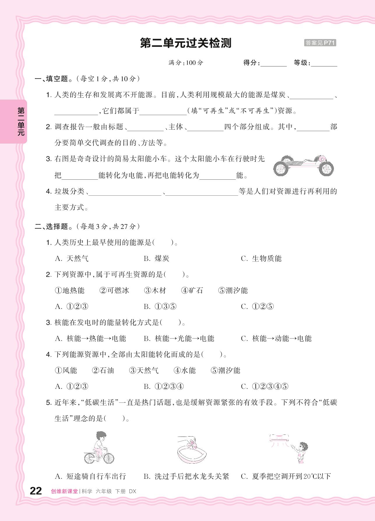 六年级科学大象版下册单元卷