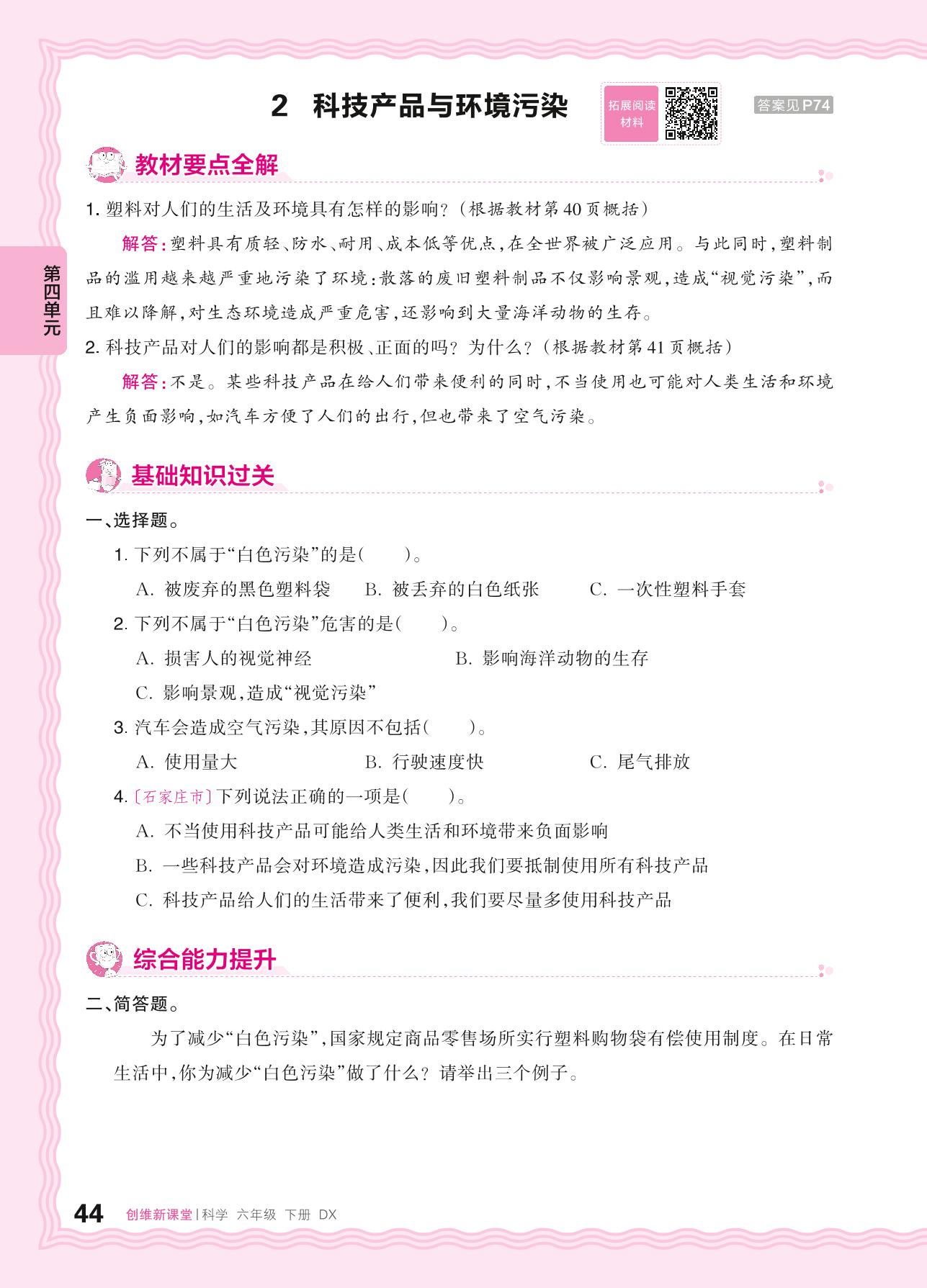 2024春下册六年级科学大象版 第四单元 人类发展与环境保护——2. 科技产品与环境污染