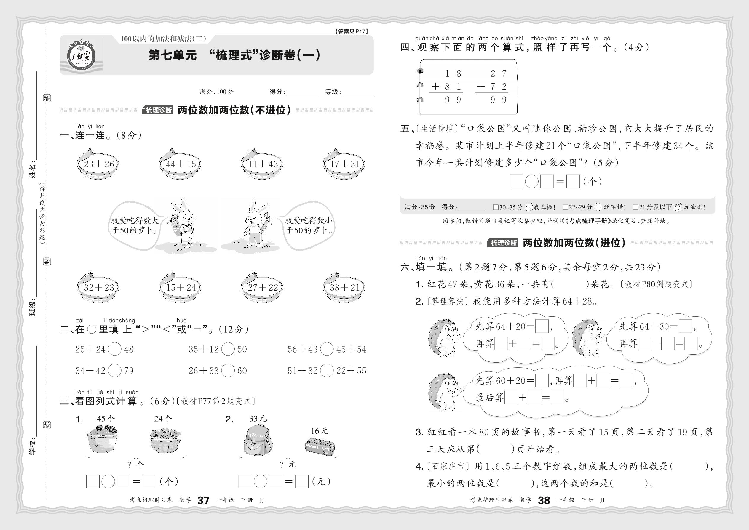 2024春下册一年级数学冀教版 第七单元 “梳理式”诊断卷(一)