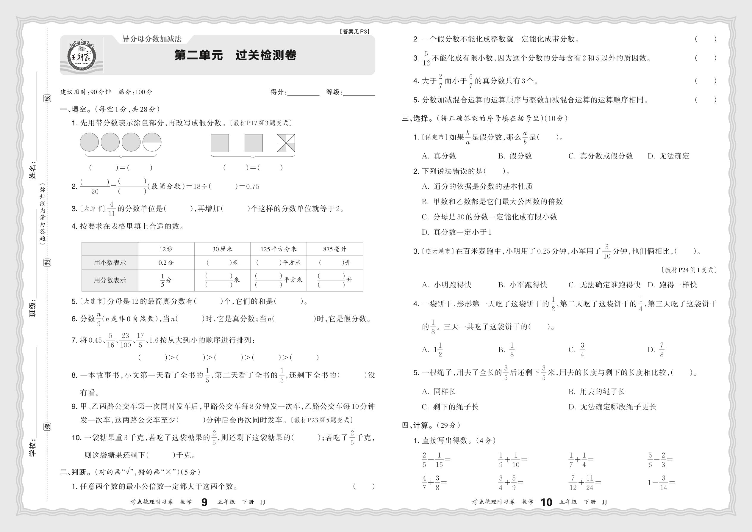 2024春下册五年级数学冀教版 第二单元 过关检测卷