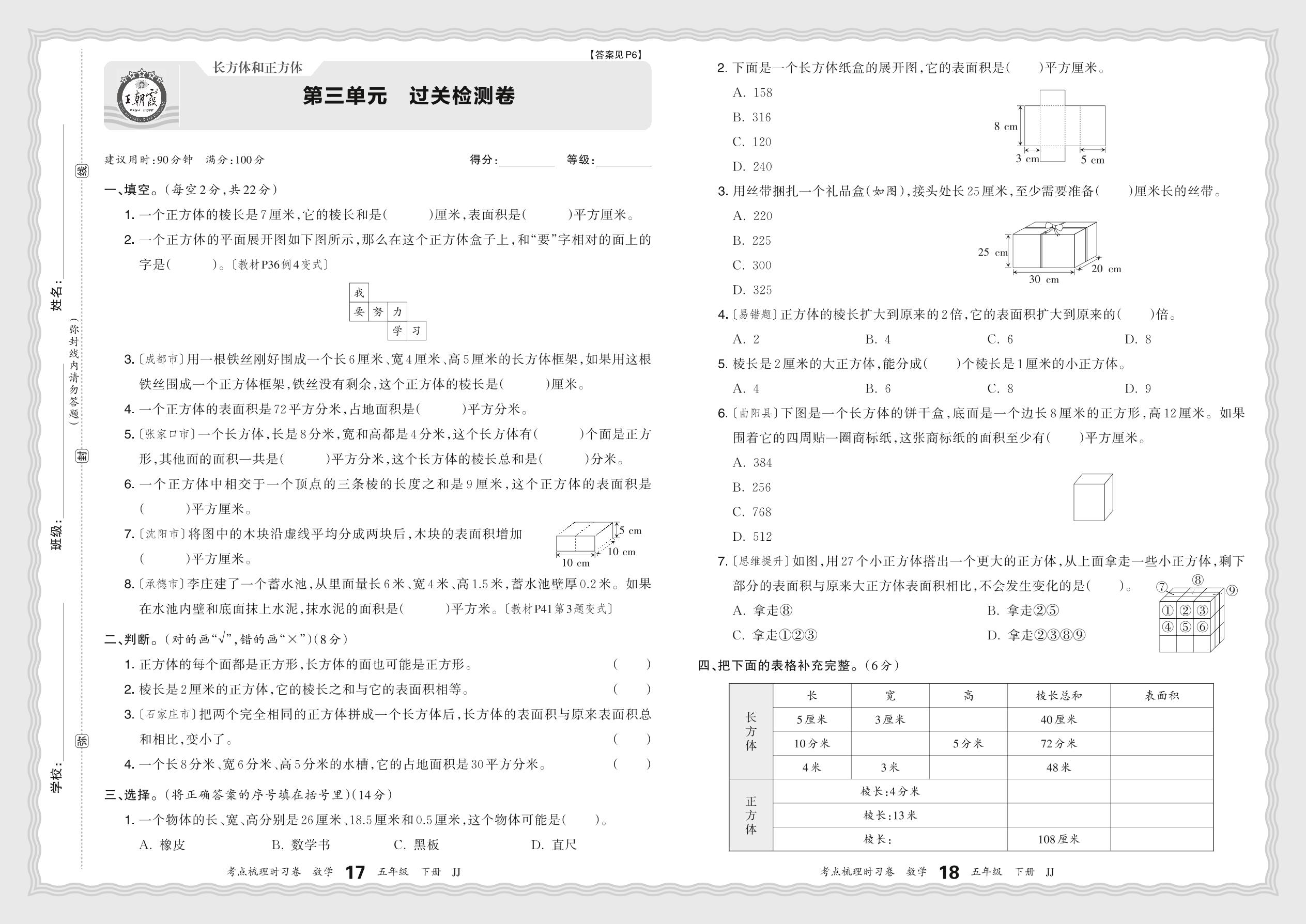五年级数学冀教版下册单元卷