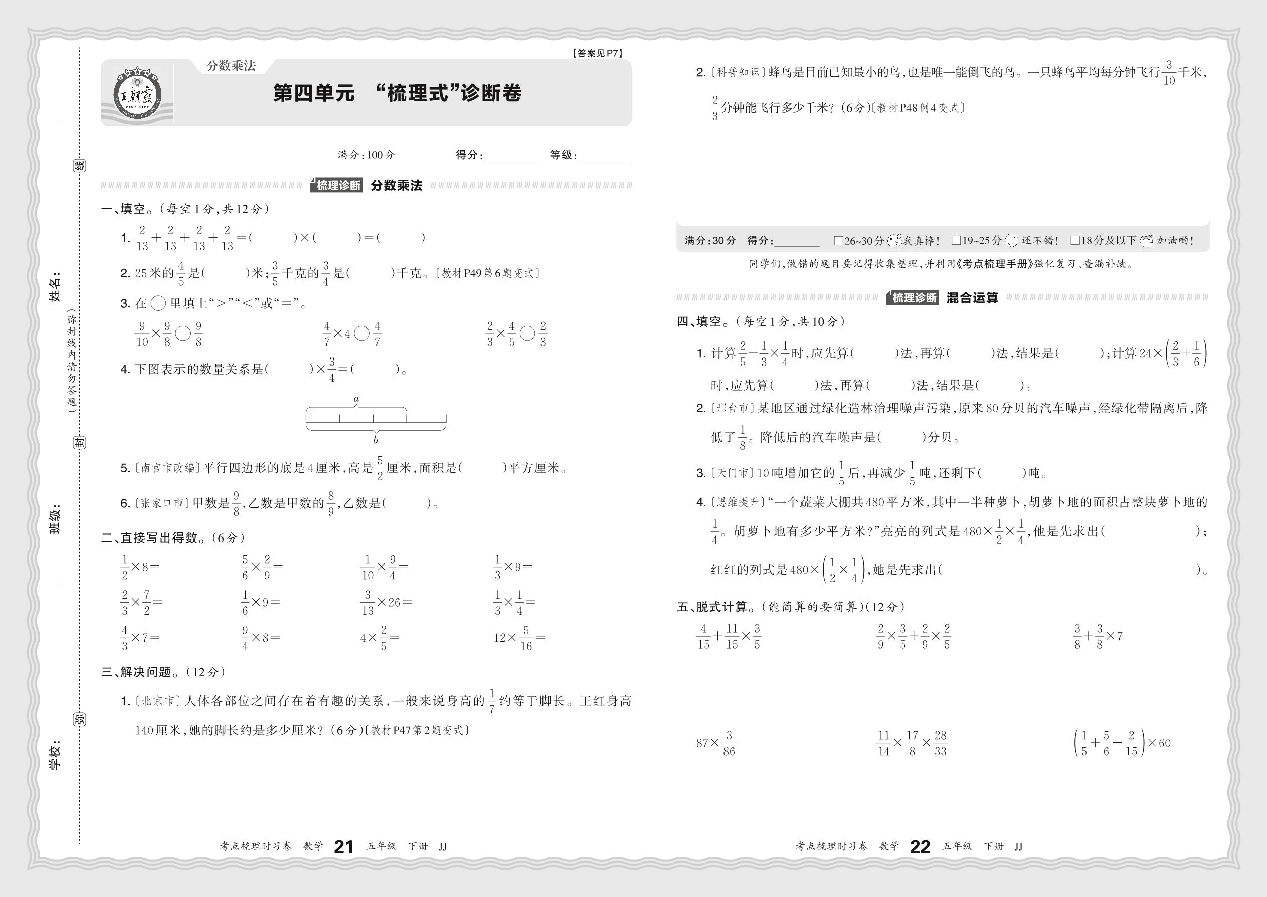 2024春下册五年级数学冀教版 第四单元 “梳理式”诊断卷