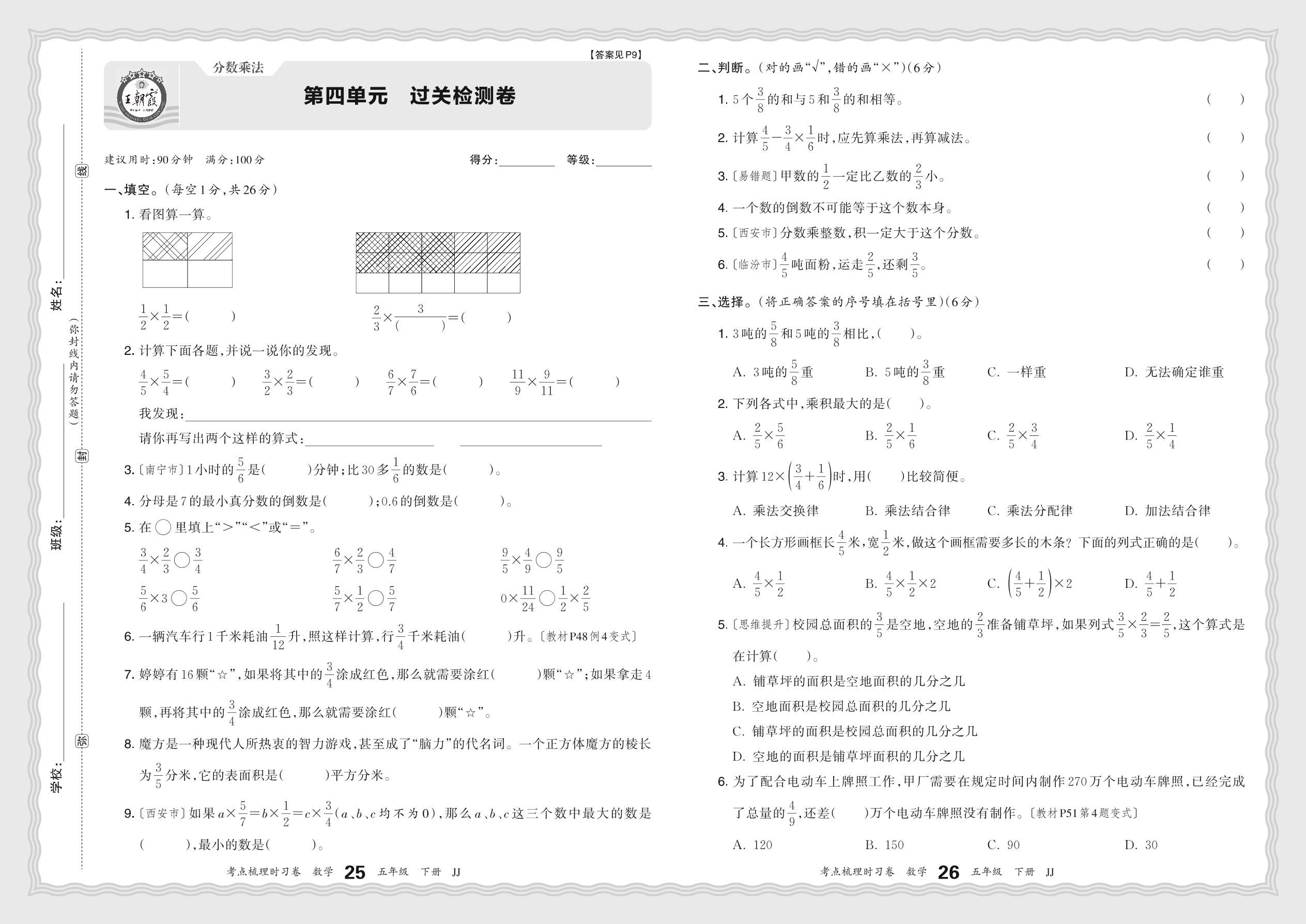 2024春下册五年级数学冀教版 第四单元 过关检测卷