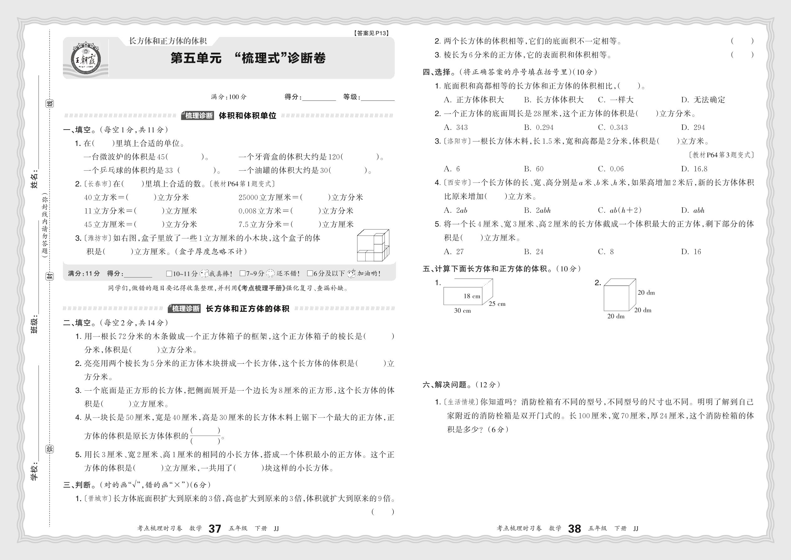 2024春下册五年级数学冀教版 第五单元 “梳理式”诊断卷