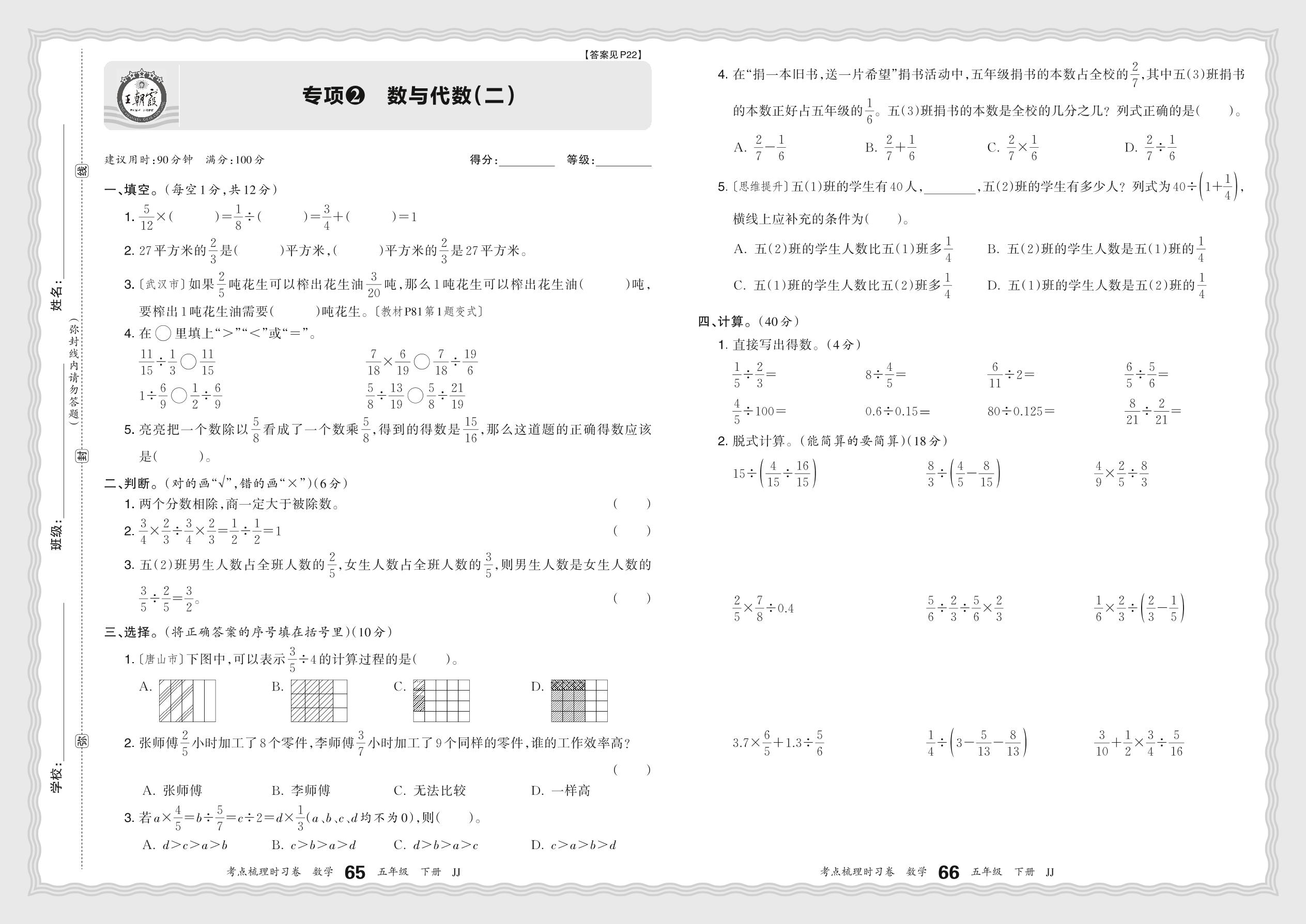 2024春下册五年级数学冀教版 期末专项卷KD版·数与代数(二)【2】