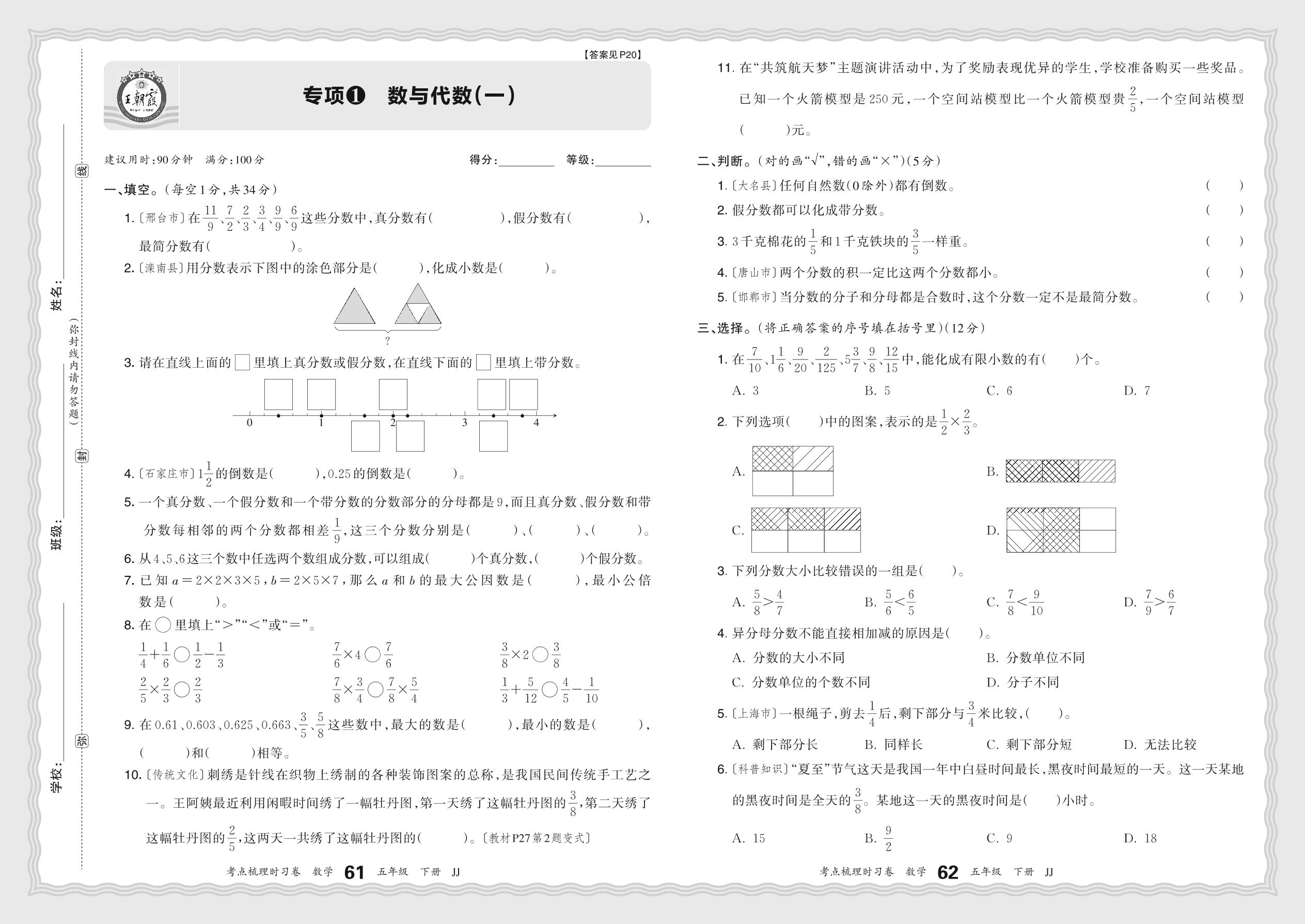 五年级数学冀教版下册专项卷