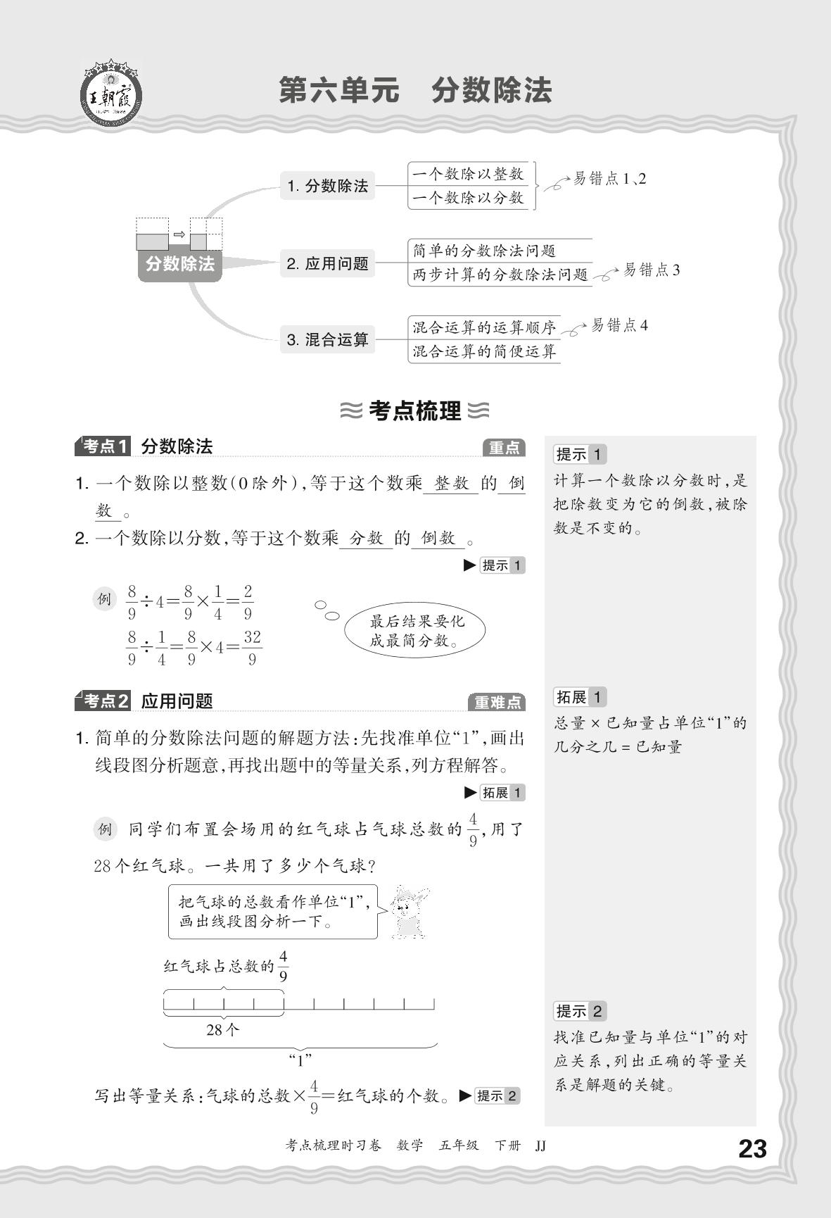 2024春下册五年级数学冀教版 考点梳理手册——第六单元 分数除法