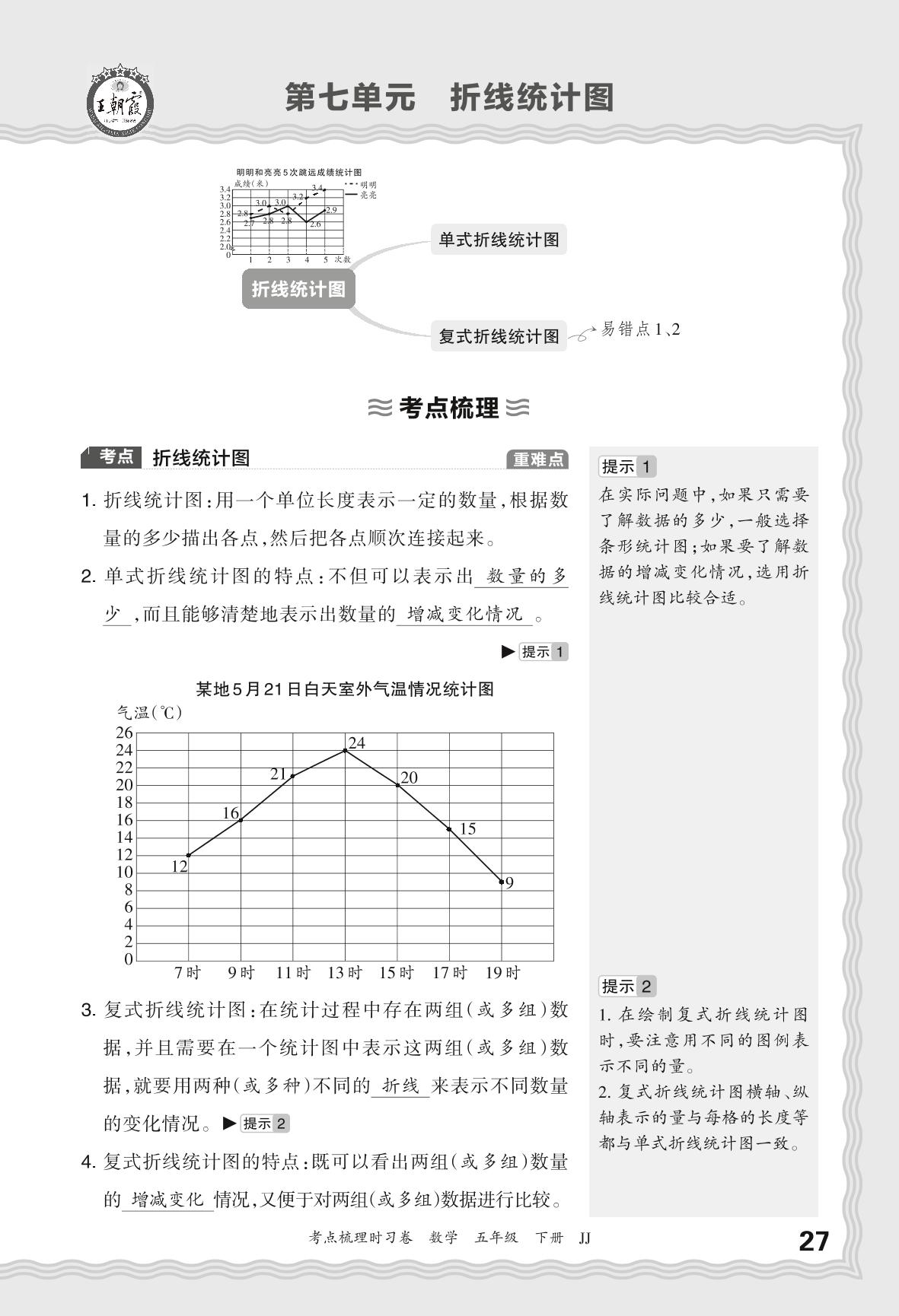 2024春下册五年级数学冀教版 考点梳理手册——第七单元 折线统计图