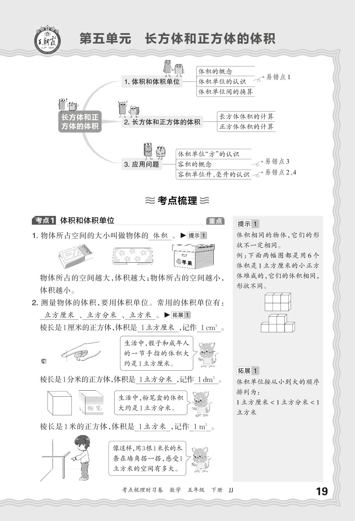 2024春下册五年级数学冀教版 考点梳理手册——第五单元 长方体和正方体的体积