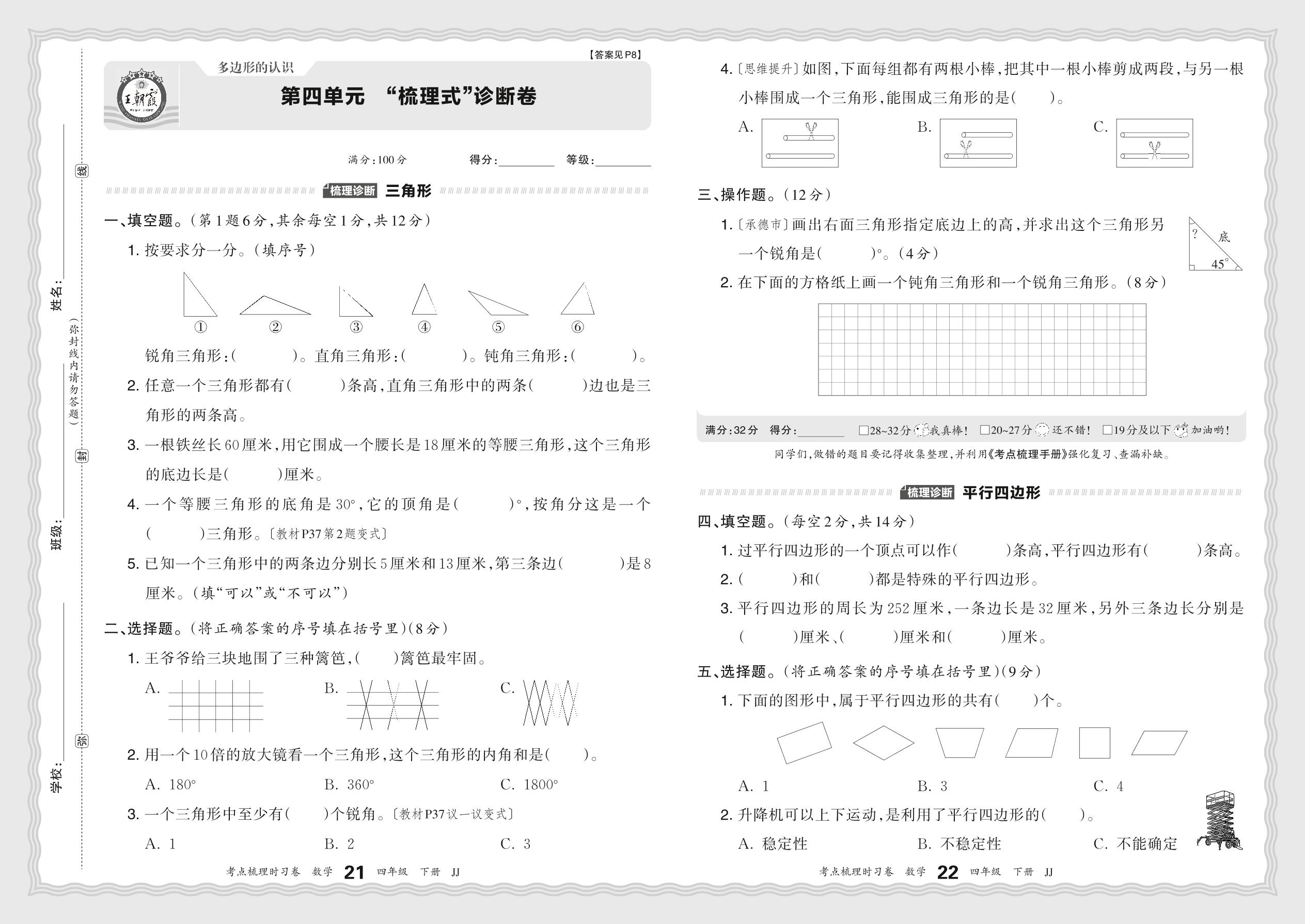 2024春下册四年级数学冀教版 第四单元 “梳理式”诊断卷
