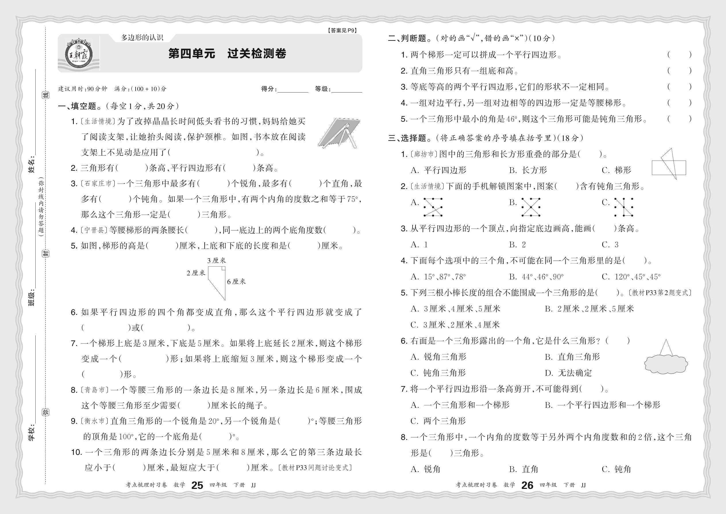 2024春下册四年级数学冀教版 第四单元 过关检测卷