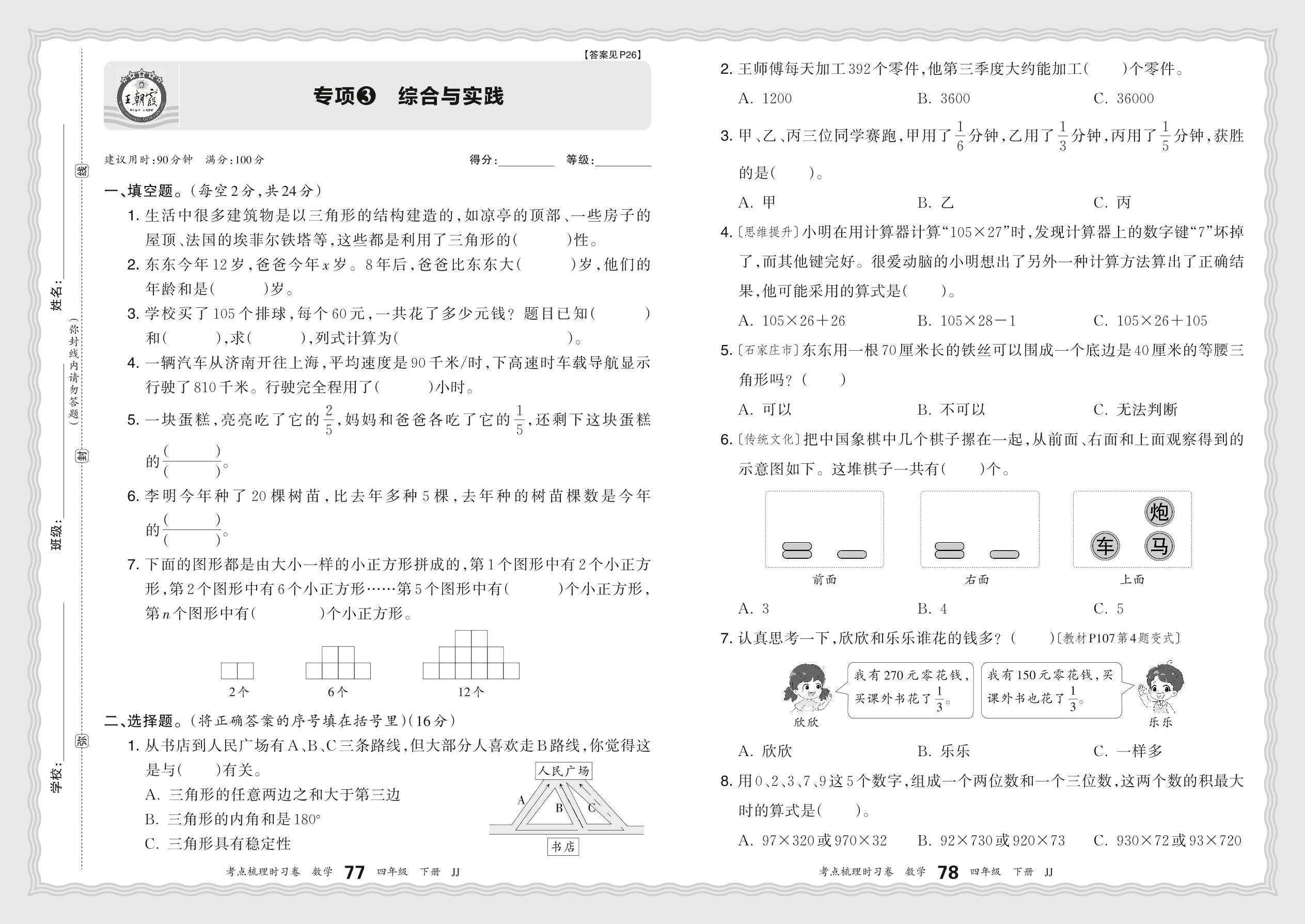 2024春下册四年级数学冀教版 期末专项卷KD版·综合与实践【3】