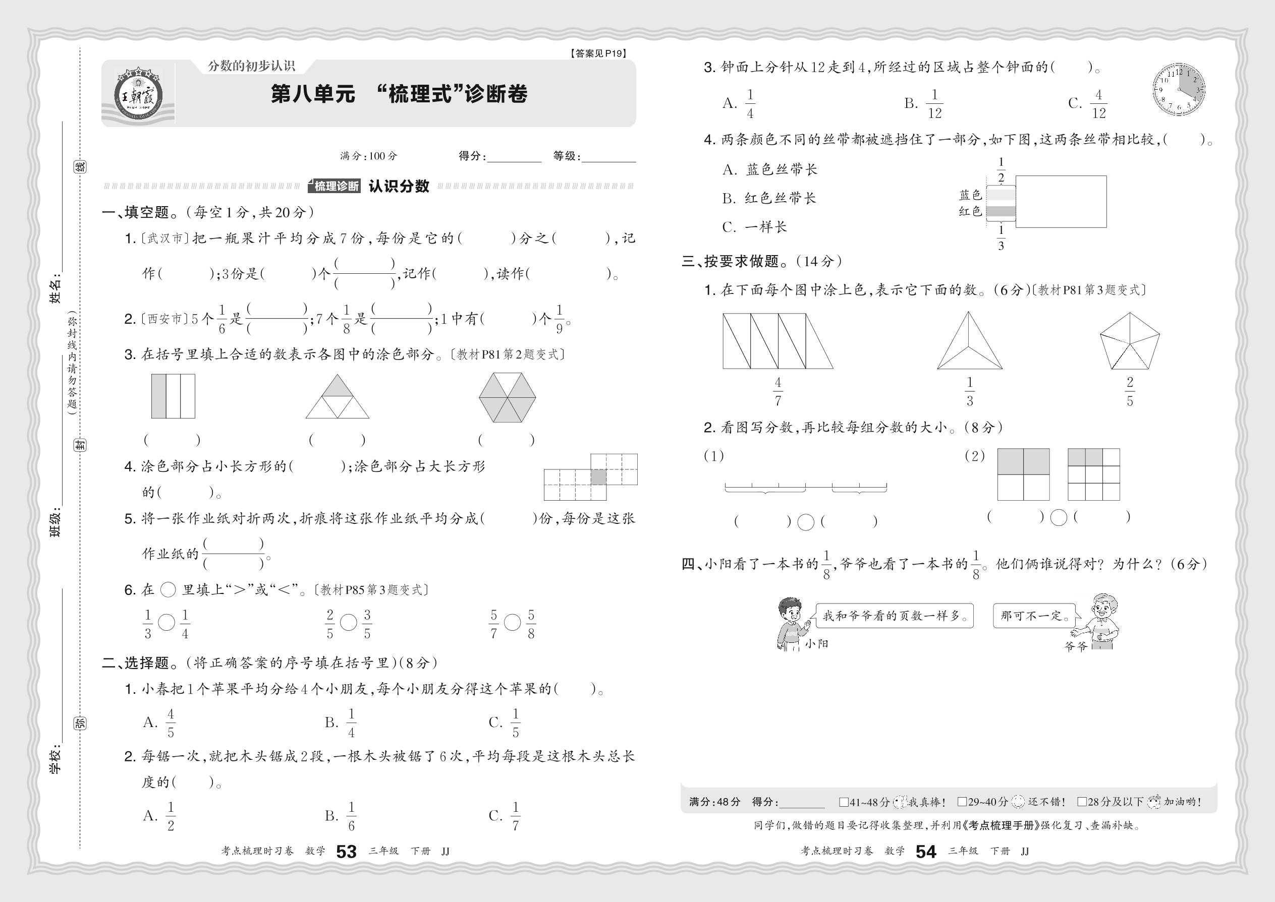 2024春下册三年级数学冀教版 第八单元 “梳理式”诊断卷