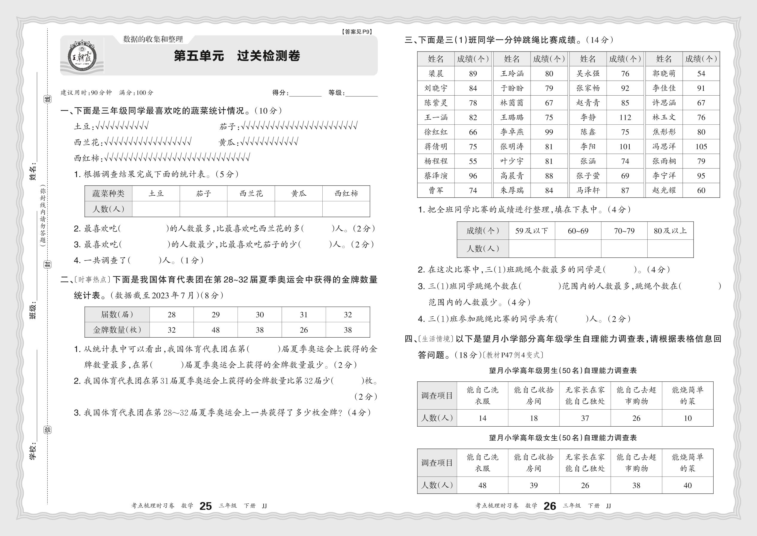 2024春下册三年级数学冀教版 第五单元 过关检测卷