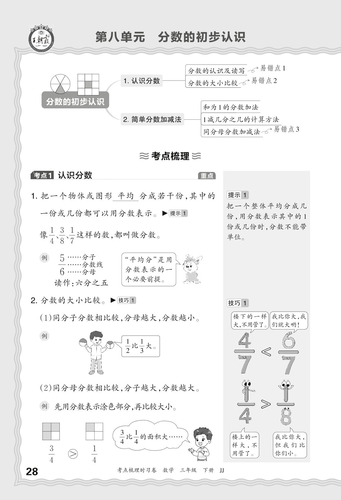 2024春下册三年级数学冀教版 考点梳理手册——第八单元 分数的初步认识