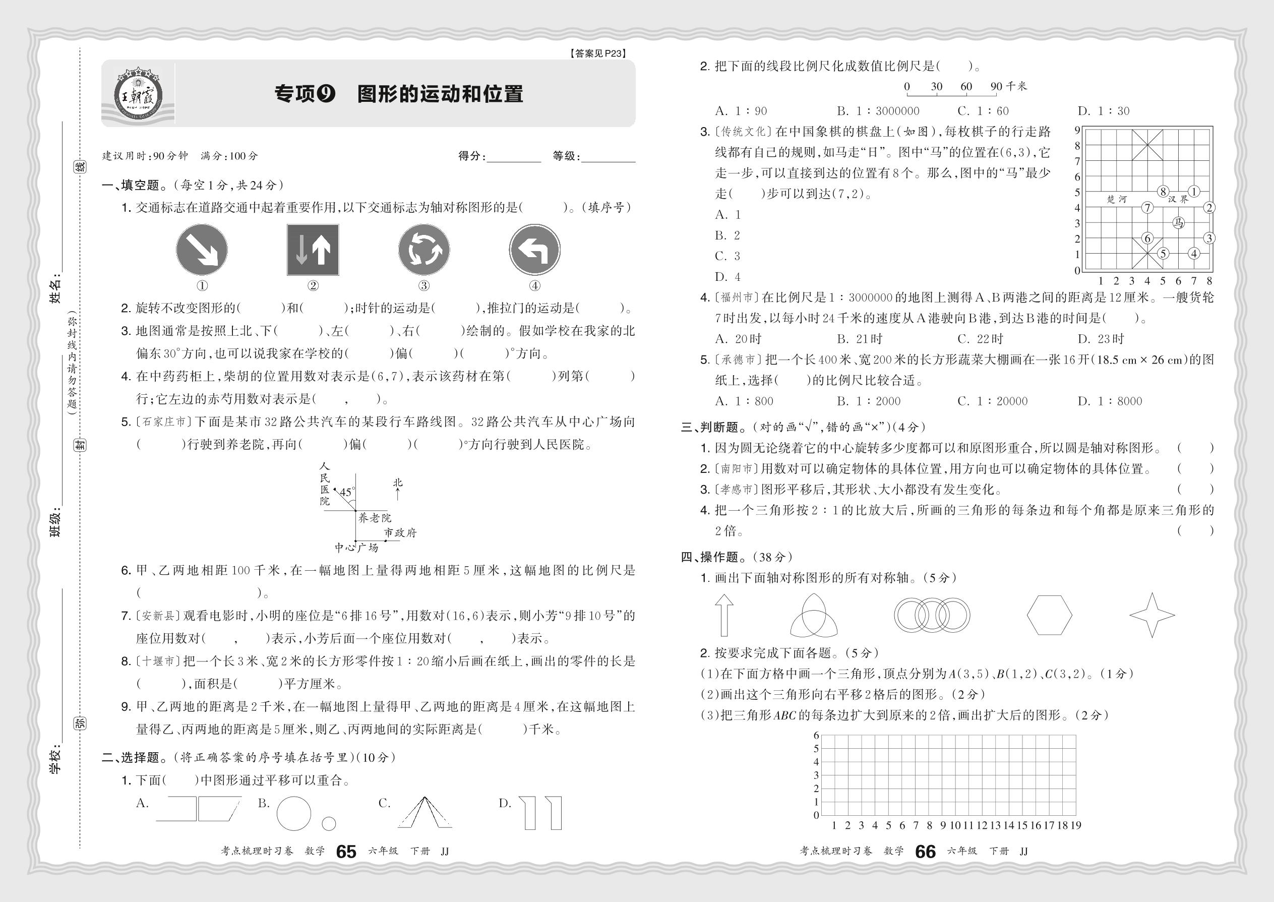 2024春下册六年级数学冀教版 期末专项卷KD版·图形的运动和位置【9】