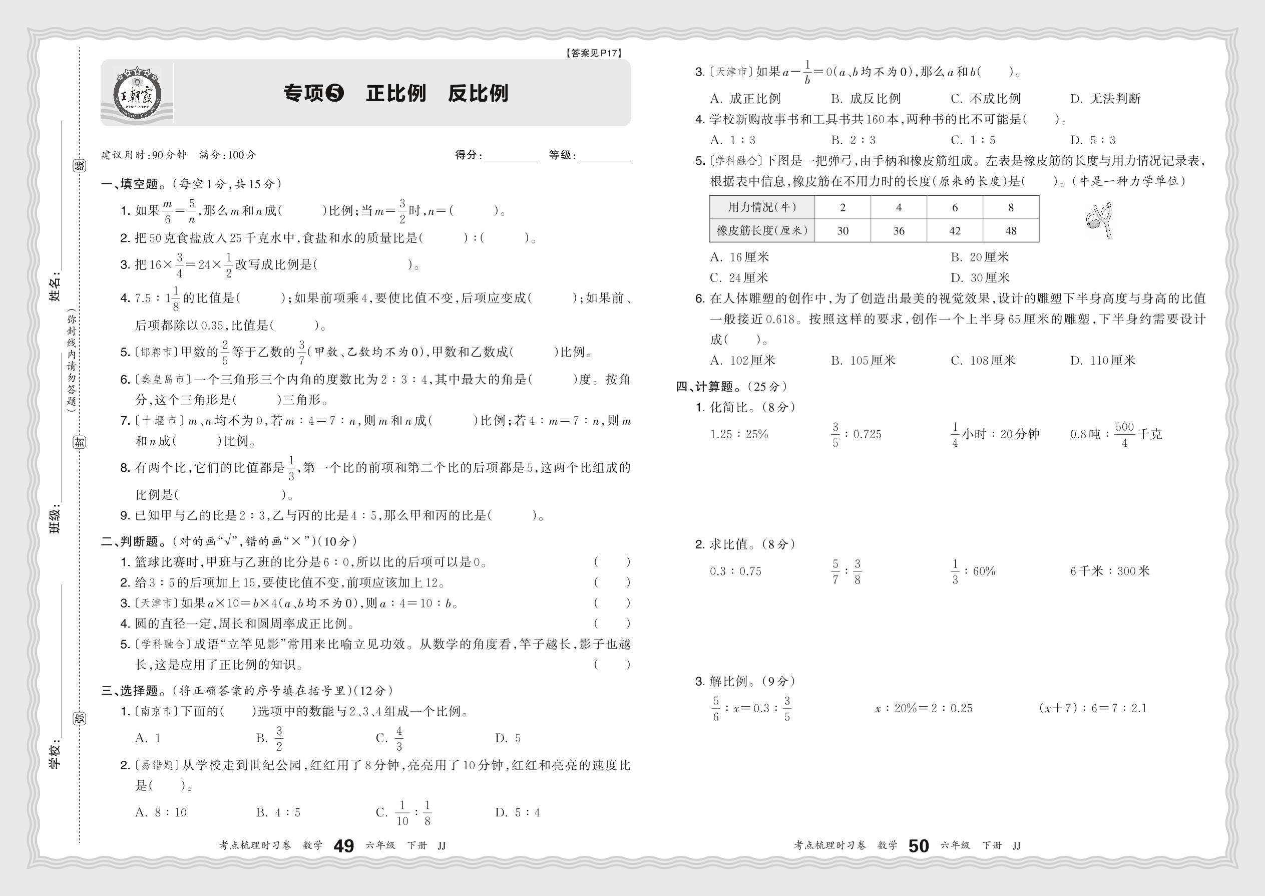 2024春下册六年级数学冀教版 期末专项卷KD版·正比例 反比例【5】