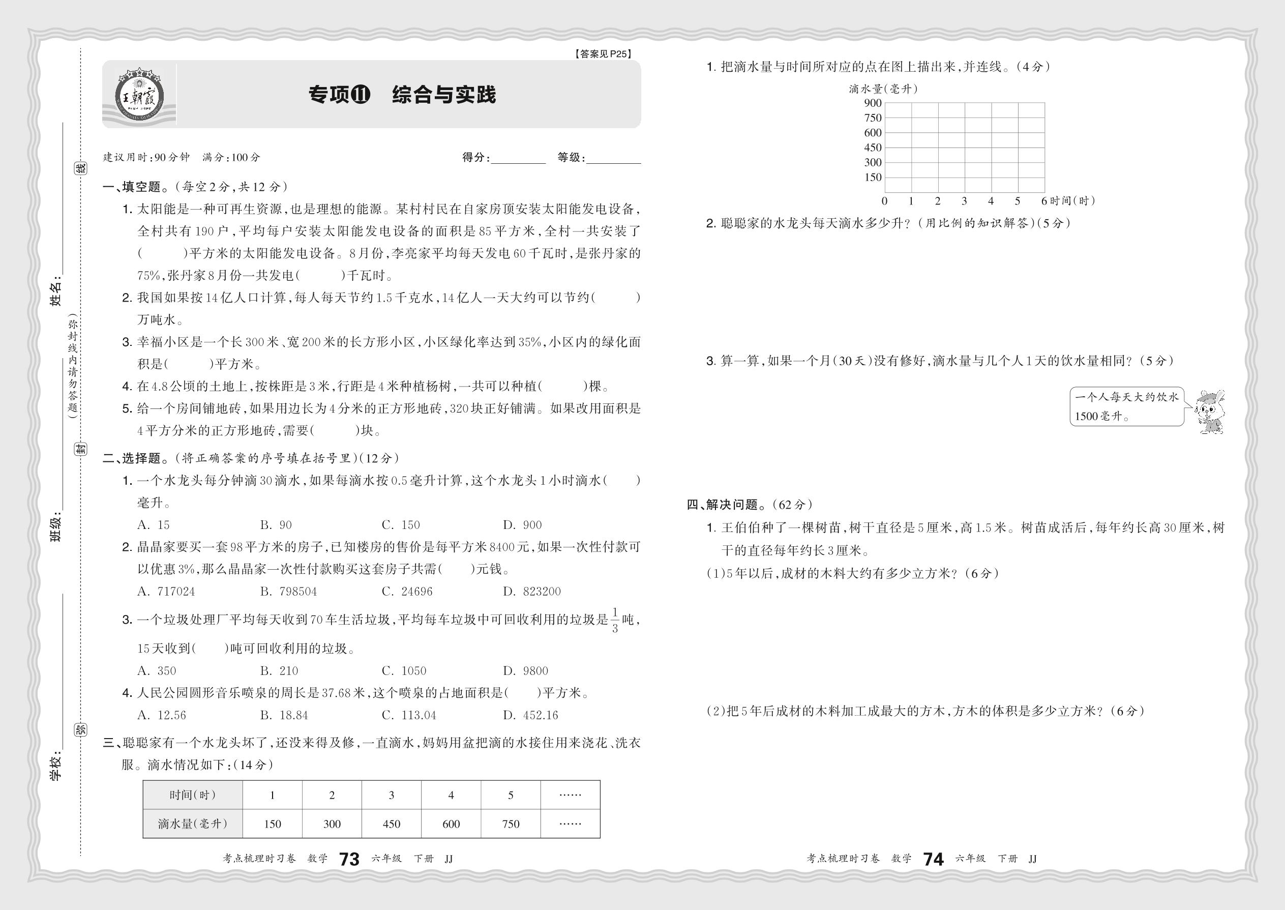 2024春下册六年级数学冀教版 期末专项卷KD版·综合与实践【11】