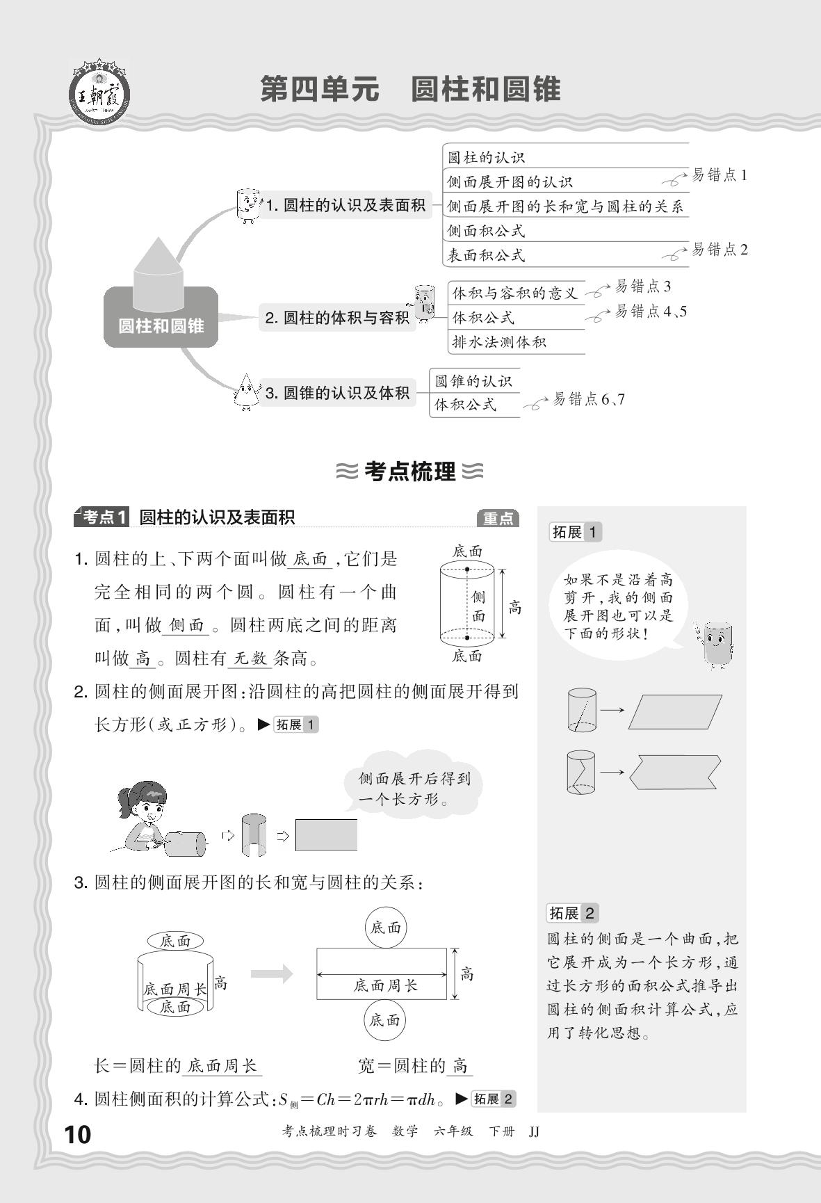 2024春下册六年级数学冀教版 考点梳理手册——第四单元 圆柱和圆锥