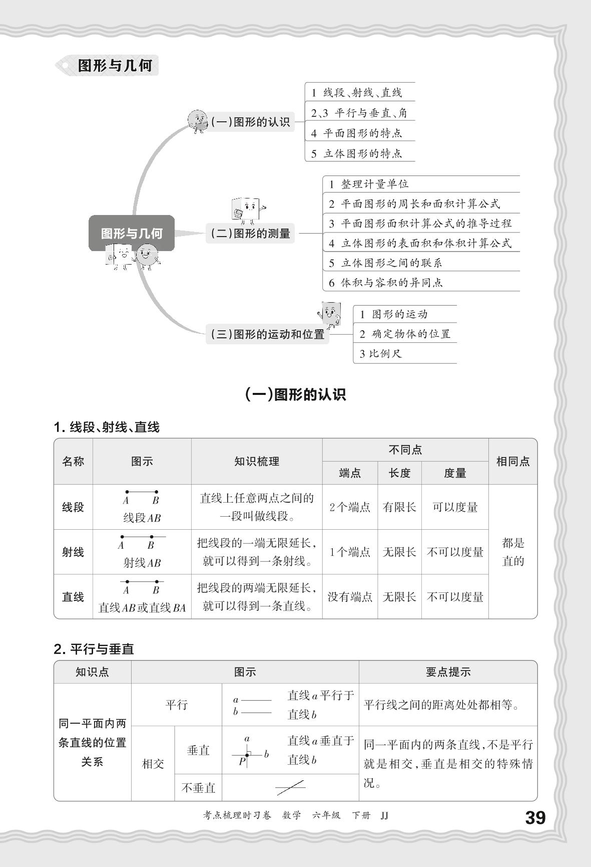 2024春下册六年级数学冀教版 考点梳理手册——总复习 图形与几何