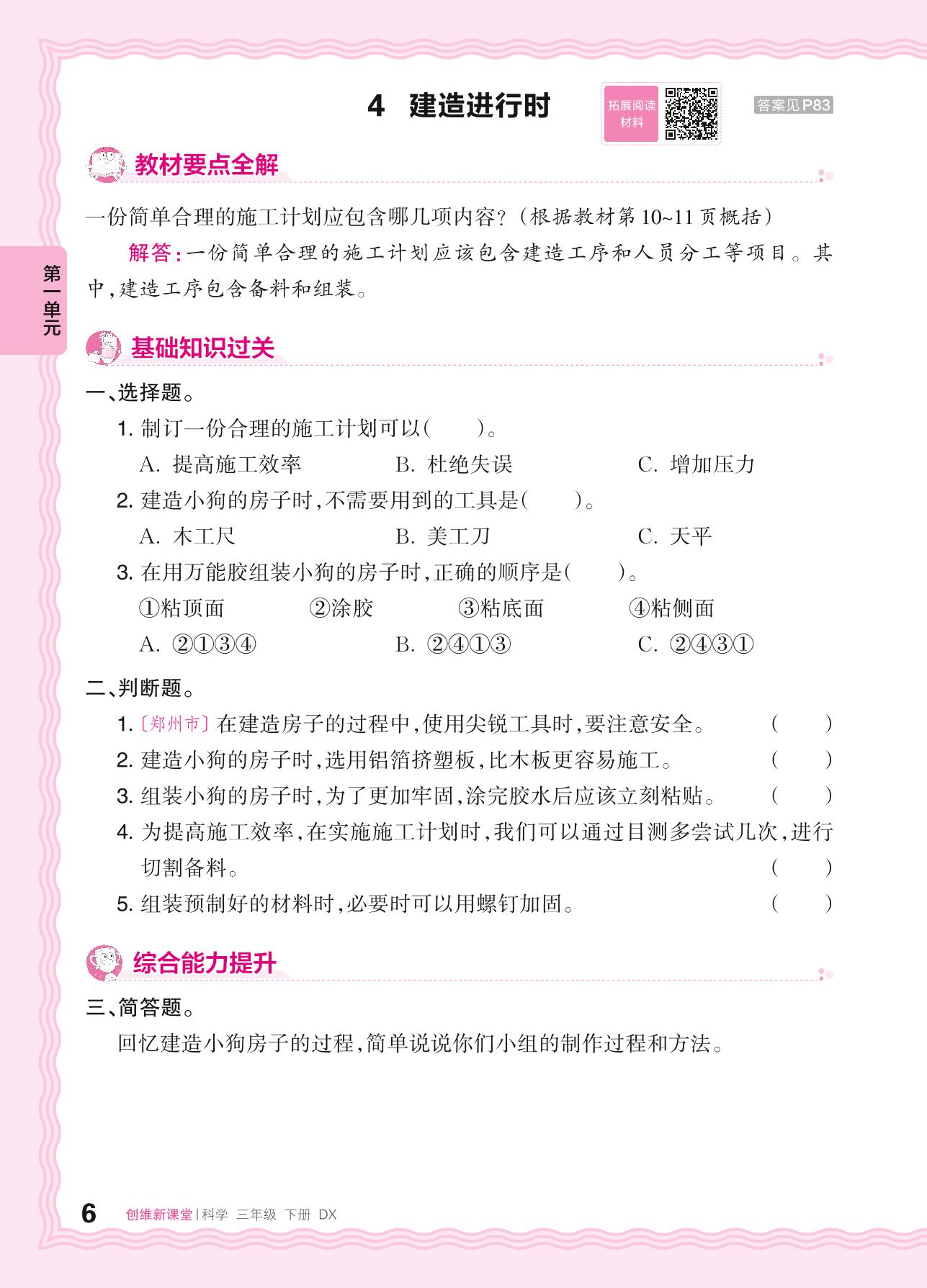 2024春下册三年级科学大象版 第一单元 小小建筑师——4. 建造进行时