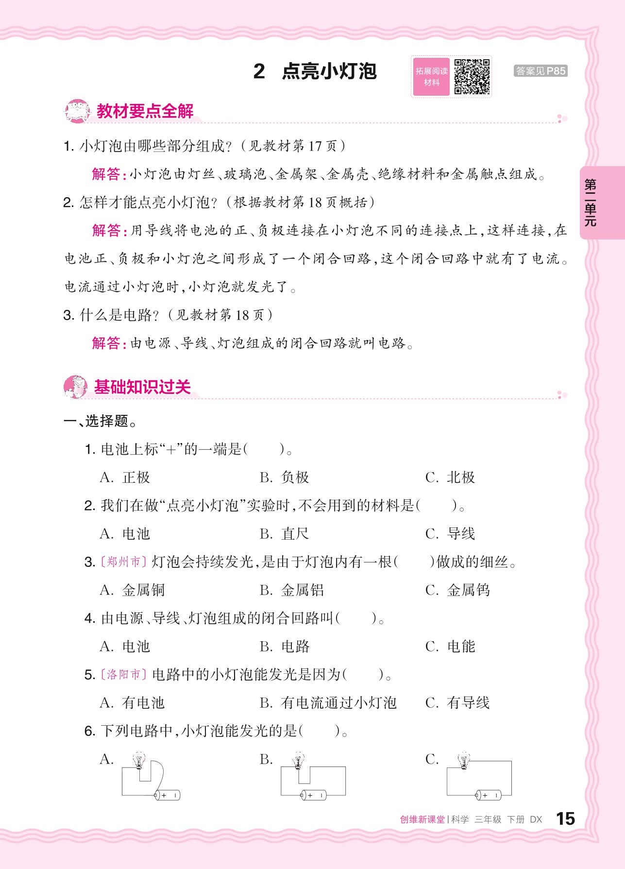 2024春下册三年级科学大象版 第二单元 电与我们的生活——2. 点亮小灯泡