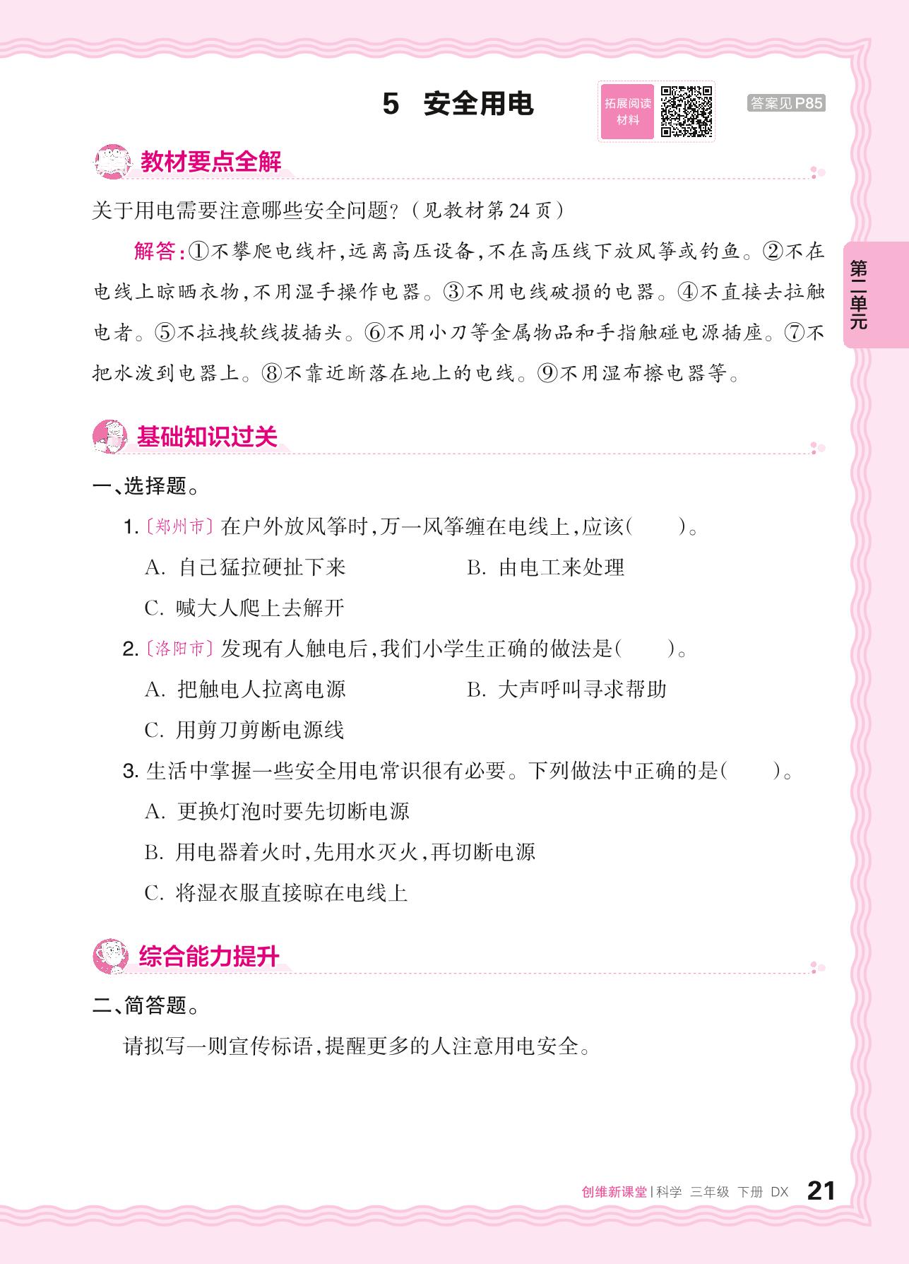 2024春下册三年级科学大象版 第二单元 电与我们的生活——5. 安全用电