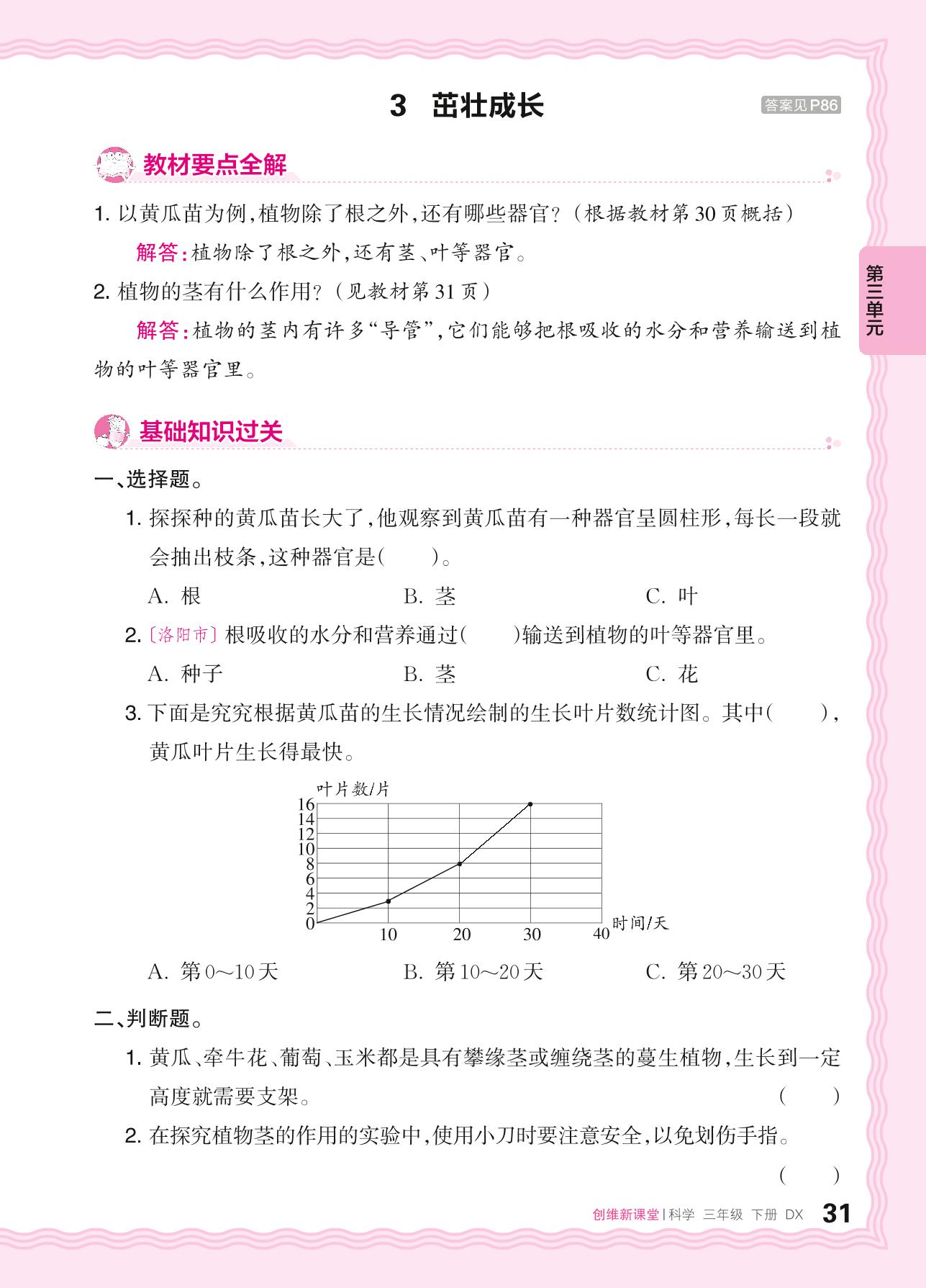 2024春下册三年级科学大象版 第三单元 植物的一生——3. 茁壮成长