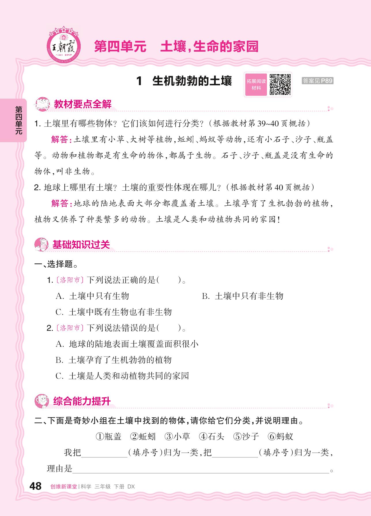 2024春下册三年级科学大象版 第四单元 土壤,生命的家园——1. 生机勃勃的土壤