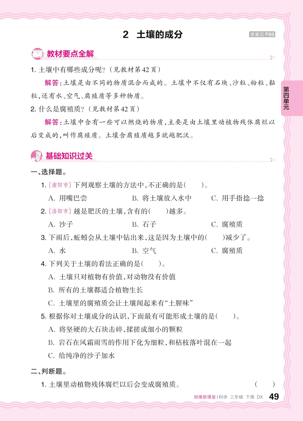2024春下册三年级科学大象版 第四单元 土壤,生命的家园——2. 土壤的成分