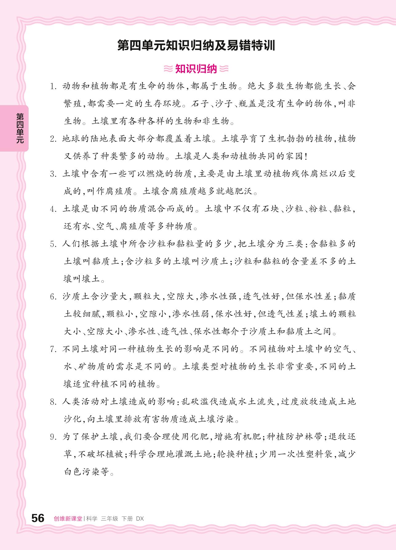 2024春下册三年级科学大象版 第四单元知识归纳及易错特训