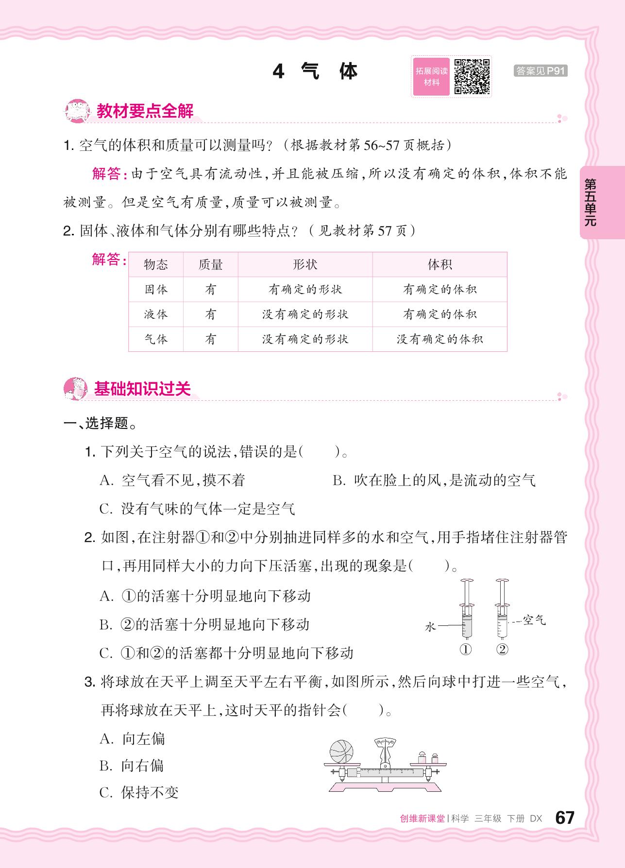 2024春下册三年级科学大象版 第五单元 不一样的物体——4. 气体