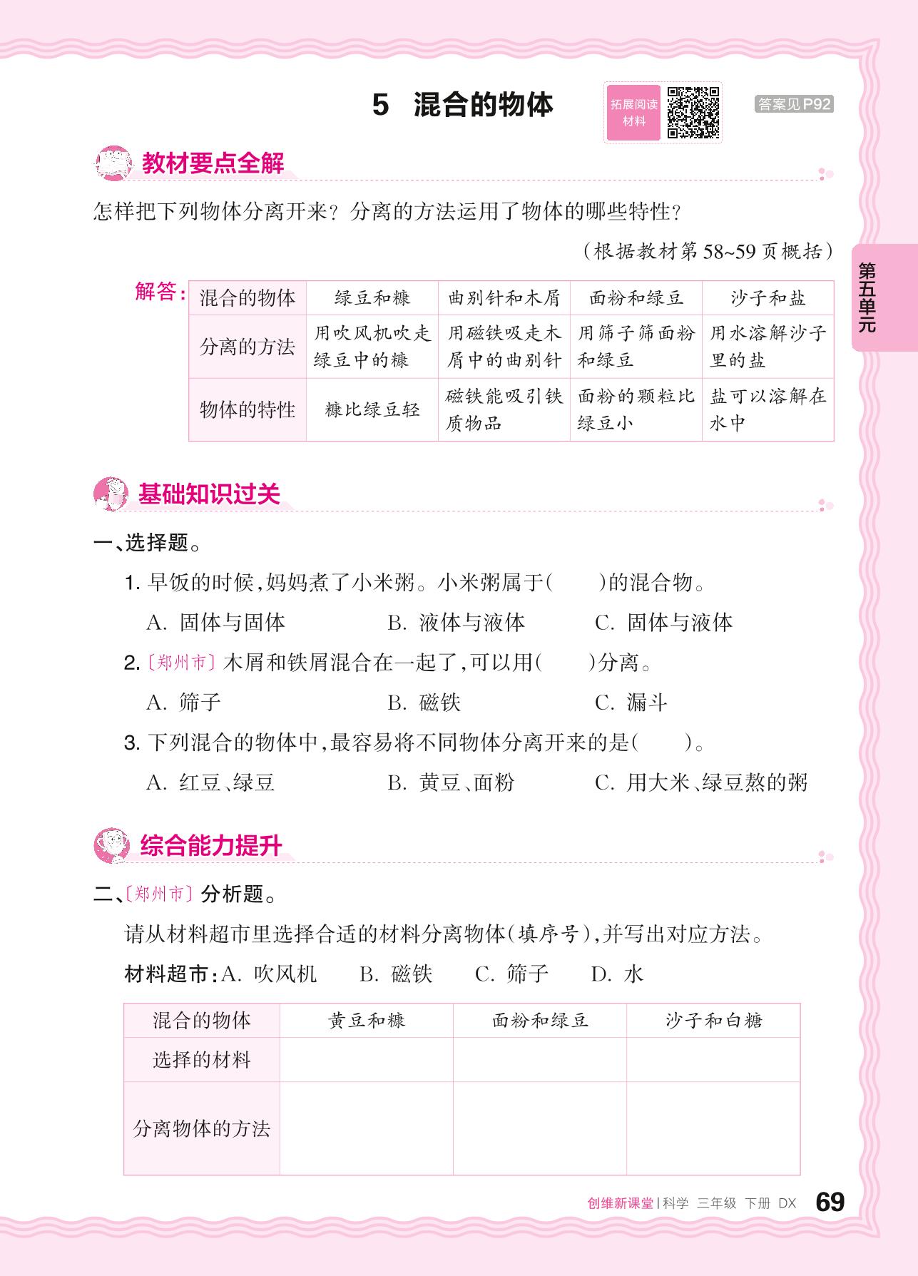 2024春下册三年级科学大象版 第五单元 不一样的物体——5. 混合的物体