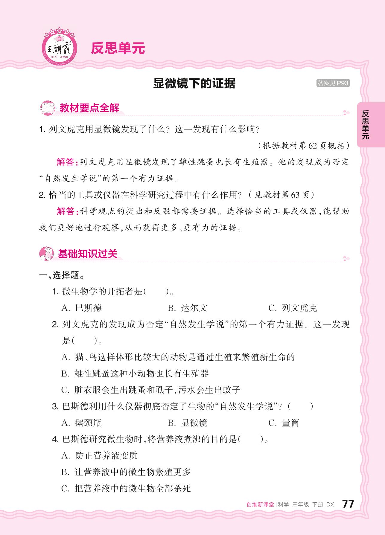 2024春下册三年级科学大象版 反思单元——显微镜下的证据