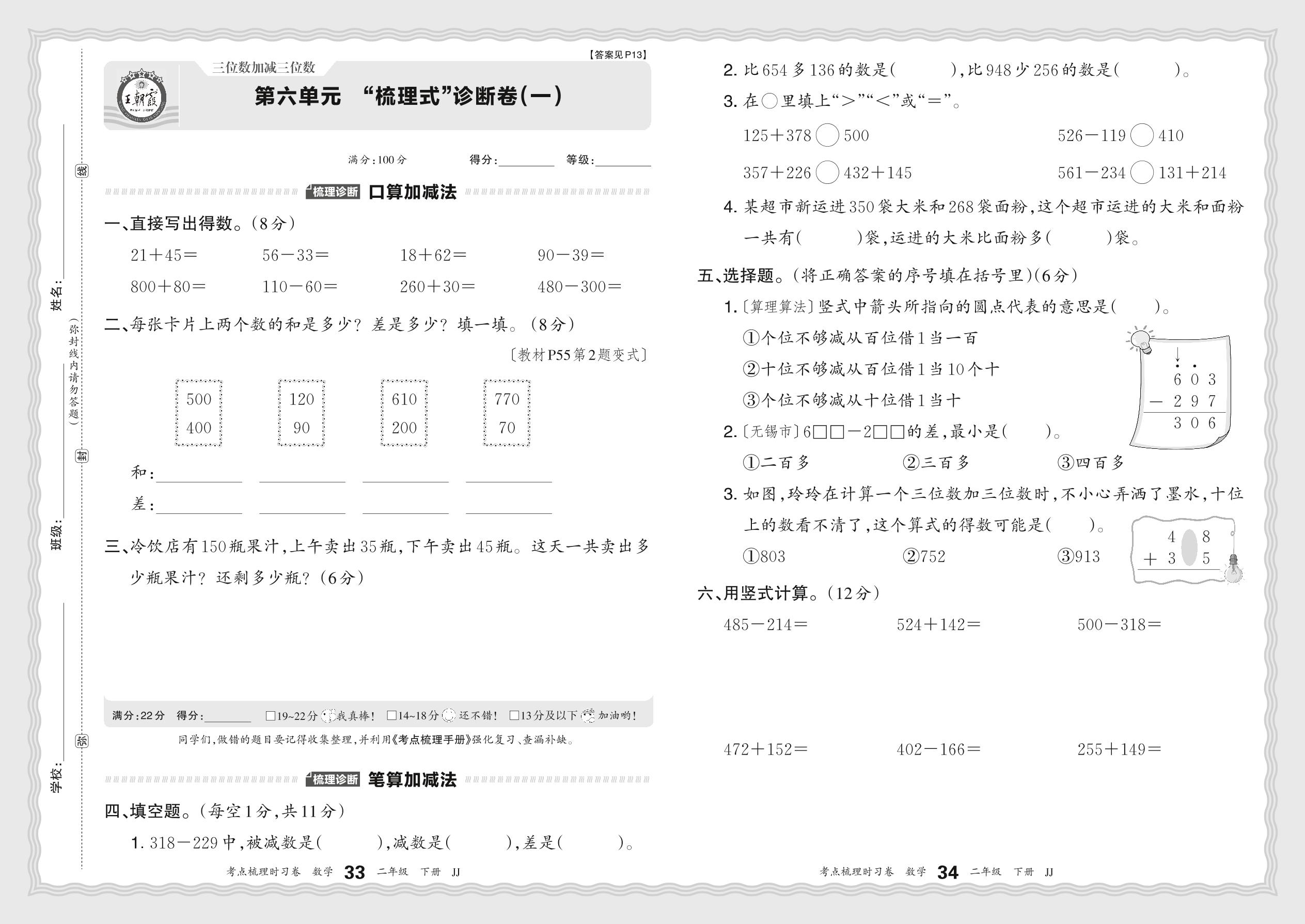 2024春下册二年级数学冀教版 第六单元 “梳理式”诊断卷(一)